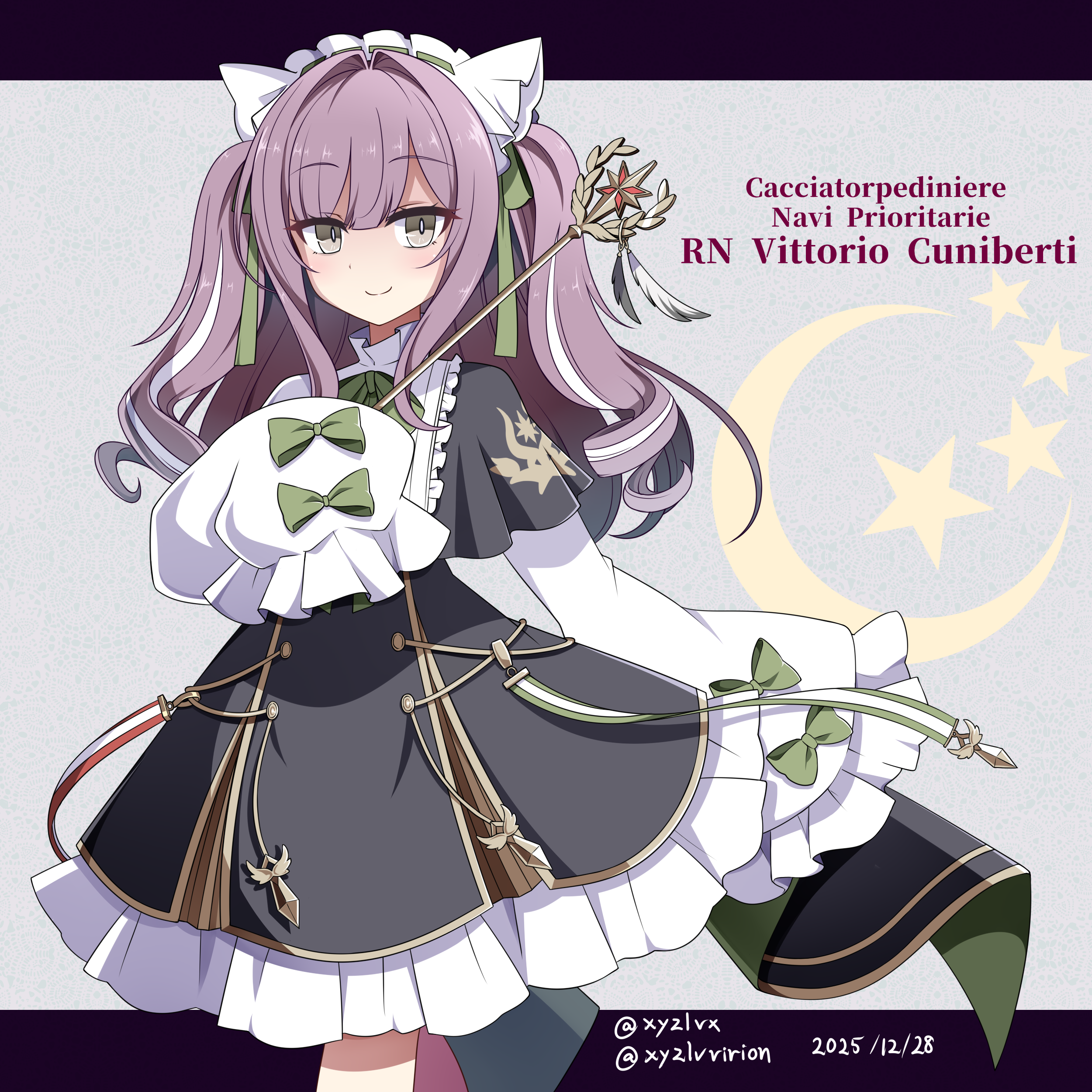 &{ID:13226471 CreatedAt:Thu Jan 01 15:30:14 -0600 2026 Score:1 Width:2500 Height:2500 MD5:8cf3275fc5ee2cb26ca9bcc356b99669 Directory:8c/f3 Image:8cf3275fc5ee2cb26ca9bcc356b99669.png Rating:general Source:https://www.pixiv.net/artworks/139249950 Change:1767303015 Owner:danbooru CreatorID:6498 ParentID:0 Sample:1 PreviewHeight:350 PreviewWidth:350 Tags:1girl 2025 absurdres artist_name azur_lane black_border blush border bow character_name closed_mouth commentary_request cowboy_shot crescent_moon dated dress dress_ribbon english_text feathers flag_print frilled_dress frilled_hairband frills green_bow green_eyes green_ribbon hair_ribbon hairband hebitsukai-san highres holding holding_wand italian_flag italian_flag_print italian_text long_hair looking_at_viewer moon outside_border purple_hair ribbon simple_background sleeves_past_fingers sleeves_past_wrists smile solo star_(symbol) translation_request vittorio_cuniberti_(azur_lane) wand white_background white_hairband Title: HasNotes:false HasComments:false FileURL:https://img2.gelbooru.com/images/8c/f3/8cf3275fc5ee2cb26ca9bcc356b99669.png PreviewURL:https://gelbooru.com/thumbnails/8c/f3/thumbnail_8cf3275fc5ee2cb26ca9bcc356b99669.jpg SampleURL:https://img2.gelbooru.com/samples/8c/f3/sample_8cf3275fc5ee2cb26ca9bcc356b99669.jpg SampleHeight:850 SampleWidth:850 Status:active PostLocked:0 HasChildren:false IsVideo:false DisplayDate:01.01.2026 15:30}