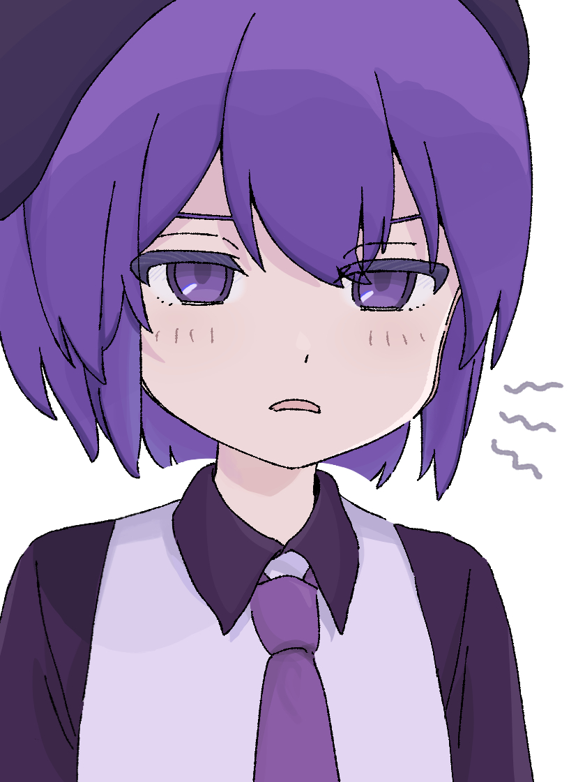 1girl collared_shirt commentary_request hakamada_tama looking_at_viewer necktie parted_lips purple_eyes purple_hair purple_necktie shirt solo upper_body utane_uta utau
