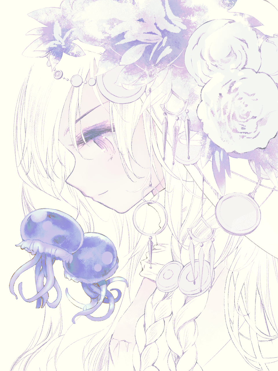 1girl commentary_request elden_ring elden_ring_nightreign expressionless highres jellyfish long_hair profile revenant_(elden_ring) solo sumi_keiichi upper_body white_eyes white_hair white_theme