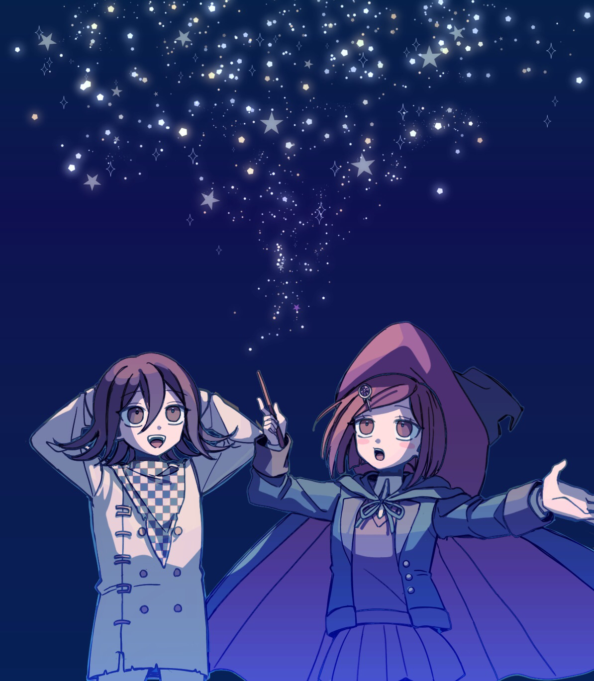 &{ID:13259659 CreatedAt:Wed Jan 07 14:15:57 -0600 2026 Score:0 Width:1194 Height:1370 MD5:f56fc484060d4768327637acee77cc77 Directory:f5/6f Image:f56fc484060d4768327637acee77cc77.jpg Rating:general Source:https://www.pixiv.net/artworks/139614090 Change:1767816958 Owner:danbooru CreatorID:6498 ParentID:0 Sample:1 PreviewHeight:350 PreviewWidth:305 Tags:1boy 1girl arms_behind_head black_hair black_jacket blue_background blush bow bowtie brown_vest buttons checkered_clothes checkered_scarf collared_jacket commentary_request danganronpa_(series) danganronpa_v3:_killing_harmony flipped_hair gem_hair_ornament hair_between_eyes hair_ornament hat highres holding holding_wand jacket long_sleeves looking_up magic milk_o oma_kokichi open_mouth pants pleated_skirt purple_eyes purple_hair red_eyes red_hair scarf school_uniform short_hair skirt smile sparkle star_(symbol) two-tone_scarf upper_body vest wand witch_hat yumeno_himiko Title: HasNotes:false HasComments:false FileURL:https://img2.gelbooru.com/images/f5/6f/f56fc484060d4768327637acee77cc77.jpg PreviewURL:https://gelbooru.com/thumbnails/f5/6f/thumbnail_f56fc484060d4768327637acee77cc77.jpg SampleURL:https://img2.gelbooru.com/samples/f5/6f/sample_f56fc484060d4768327637acee77cc77.jpg SampleHeight:975 SampleWidth:850 Status:active PostLocked:0 HasChildren:false IsVideo:false DisplayDate:07.01.2026 14:15}
