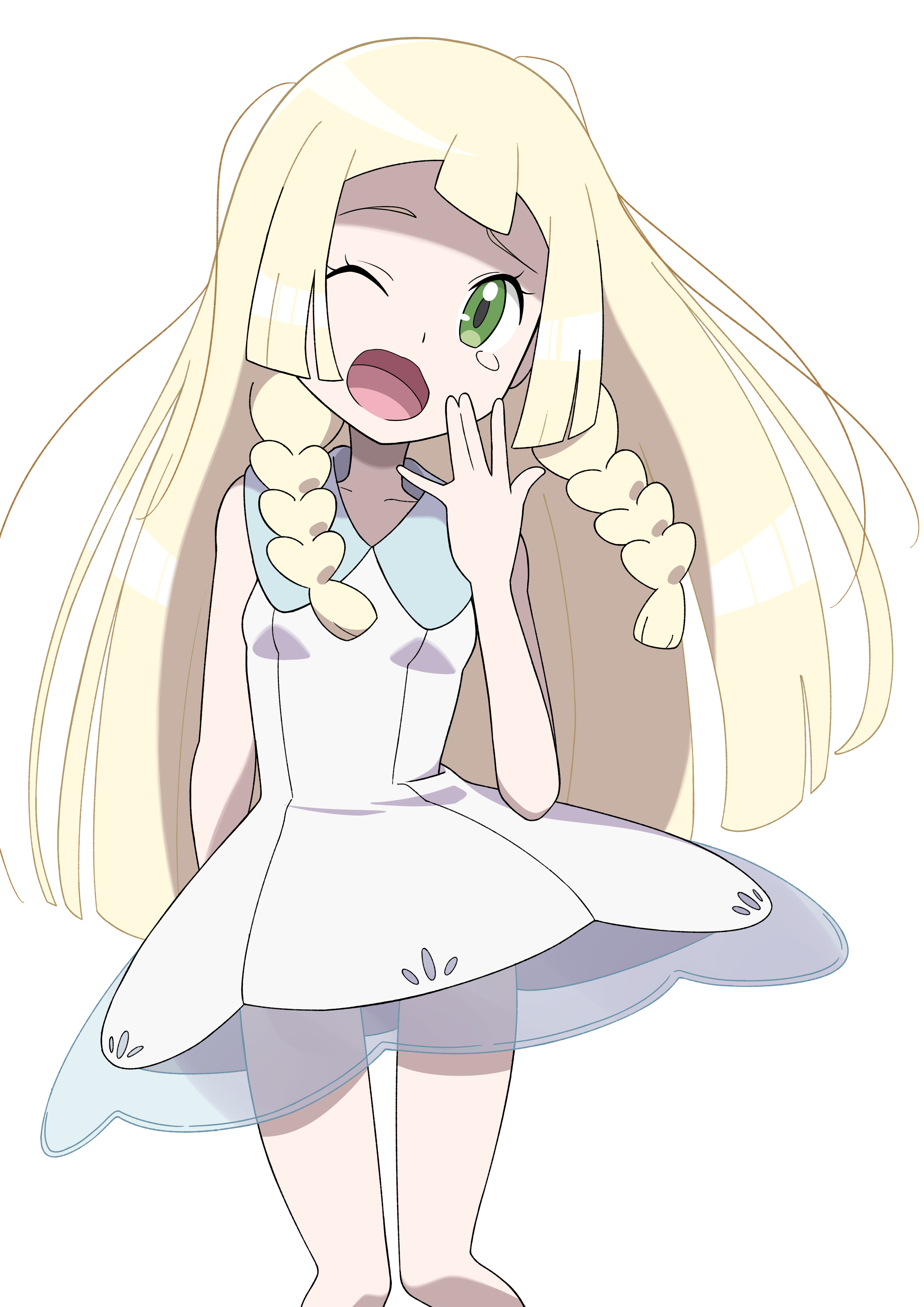 1girl absurdres araki_megami blonde_hair highres lillie_(pokemon) pokemon pokemon_sun_and_moon simple_background solo white_background
