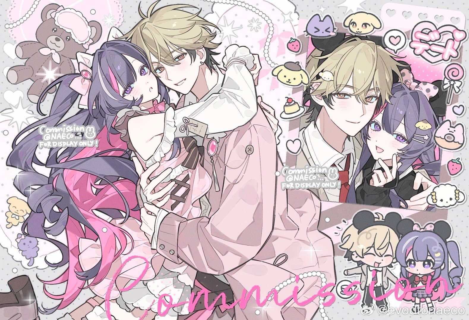 black_hair blonde_hair blush bow character_request chinese_commentary commentary_request copyright_request evodtonaeco hair_ornament hat jacket long_hair long_sleeves necktie purple_hair shirt smile tagme