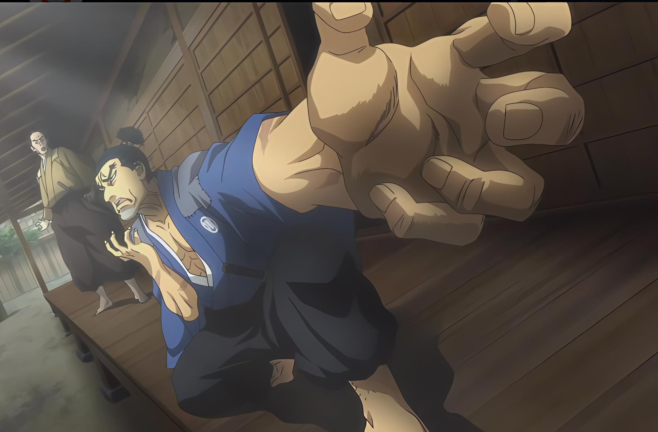 2boys abs blue_shirt hyouge_mono masasune_date multiple_boys shirt