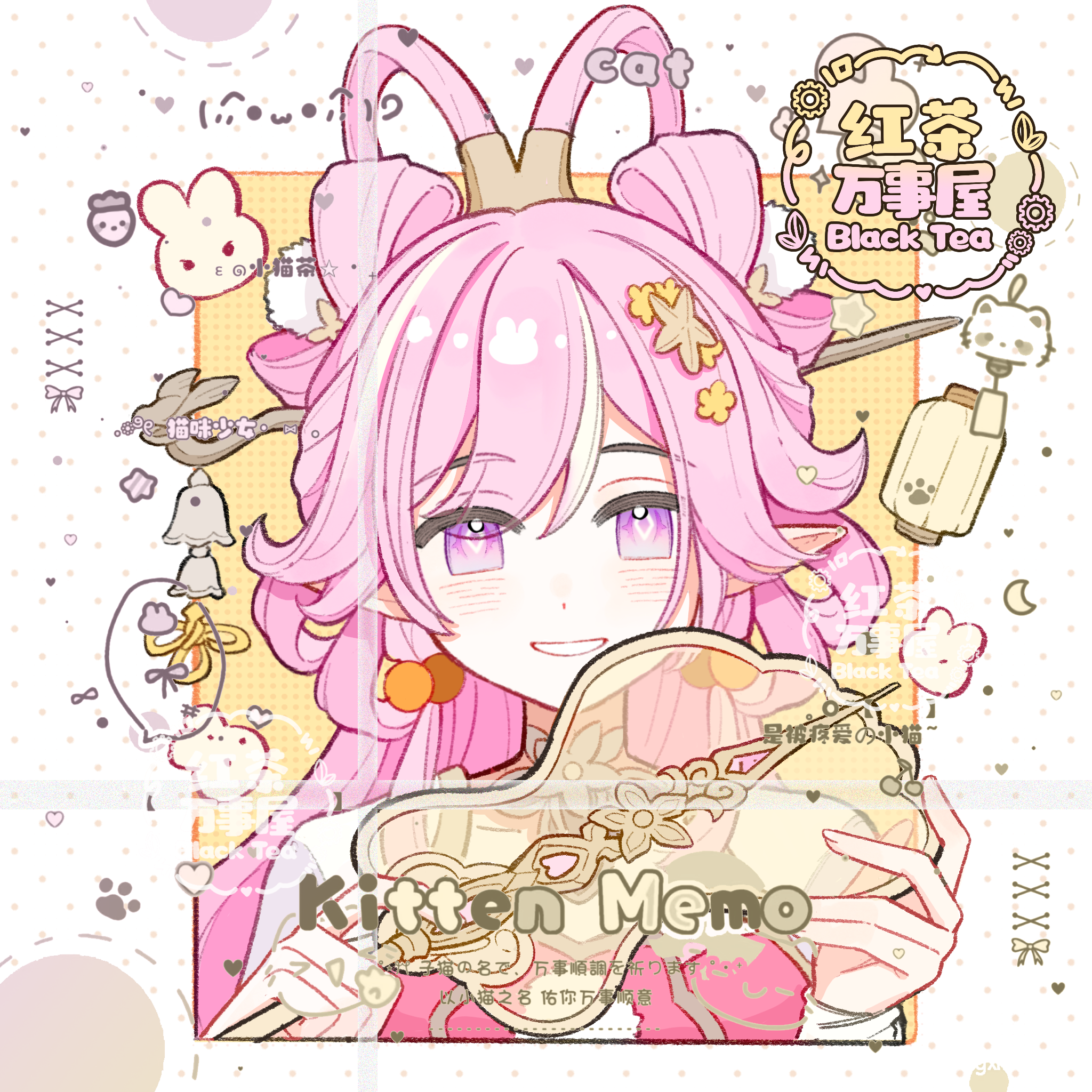1girl bell blacktea chinese_clothes chinese_hairstyle diamond-shaped_pupils diamond_(shape) dress elf elysia_(hi_love_elf)_(honkai_impact) elysia_(honkai_impact) elysia_(lunar_grace)_(honkai_impact) feixianji_(hairstyle) flower hair_flower hair_ornament hair_rings highres honkai_(series) honkai_impact_3rd long_hair looking_at_viewer official_alternate_costume pink_hair pointy_ears purple_eyes red_dress smile solo symbol-shaped_pupils very_long_hair watermark