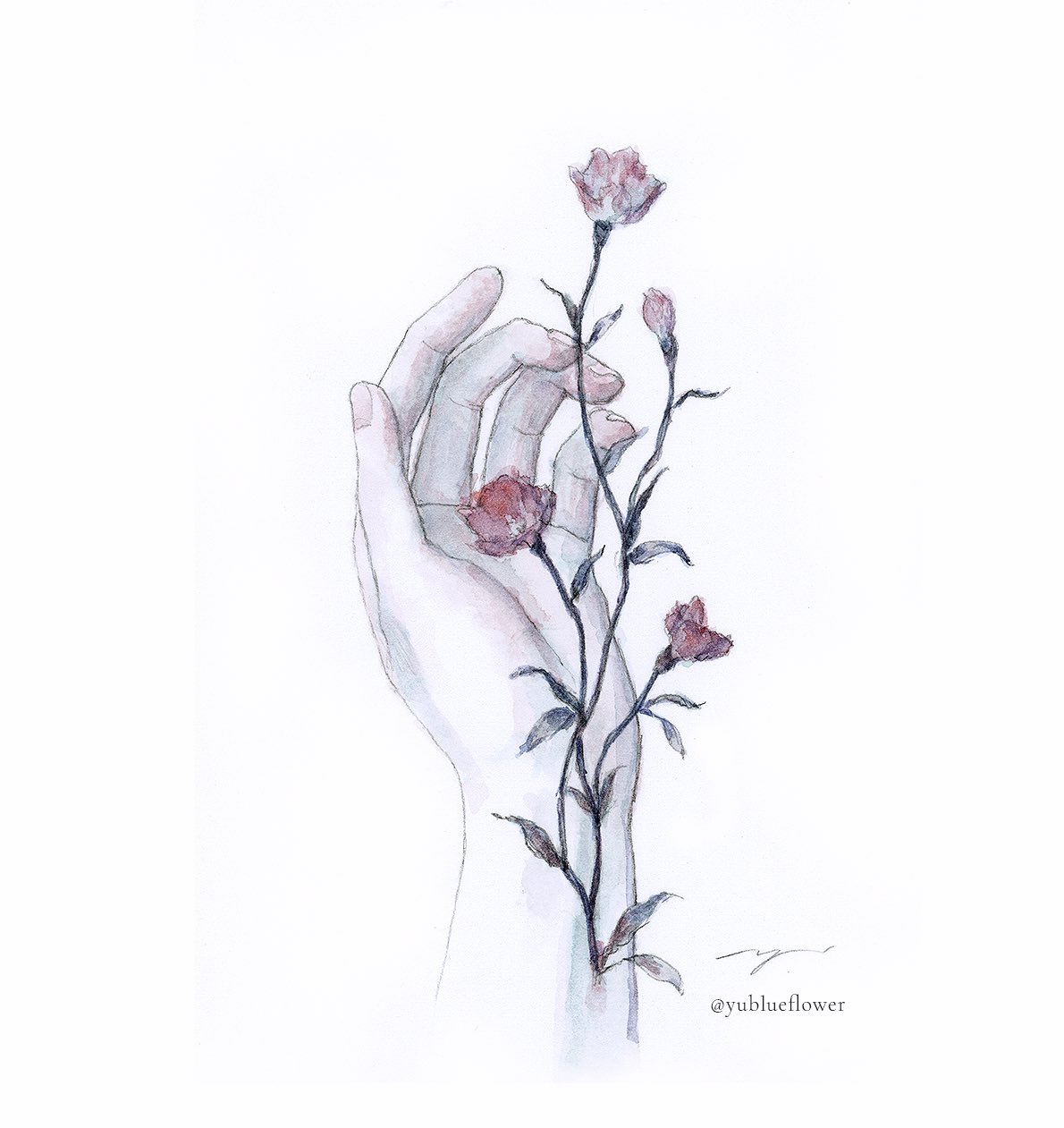 1girl commentary_request flower hand_focus highres original painting_(medium) pale_skin ringo_komachi solo surreal traditional_media watercolor_(medium) white_background