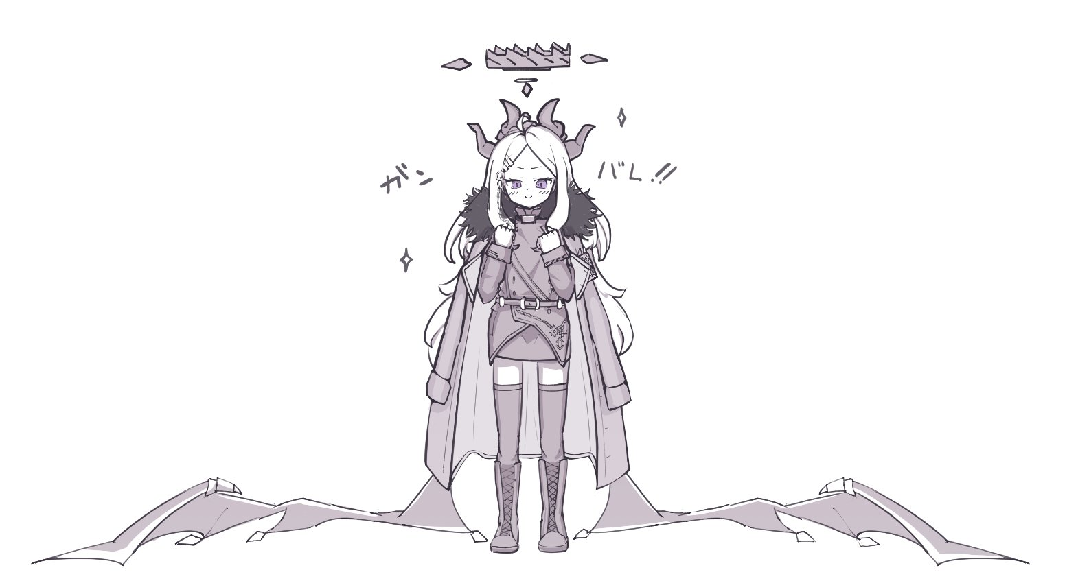 1girl ahoge blue_archive coat coat_on_shoulders demon_girl demon_horns demon_wings full_body hina_(blue_archive) horns long_hair looking_at_viewer low_wings omoti_tumaru purple_eyes simple_background solo standing thighhighs white_background white_hair wings