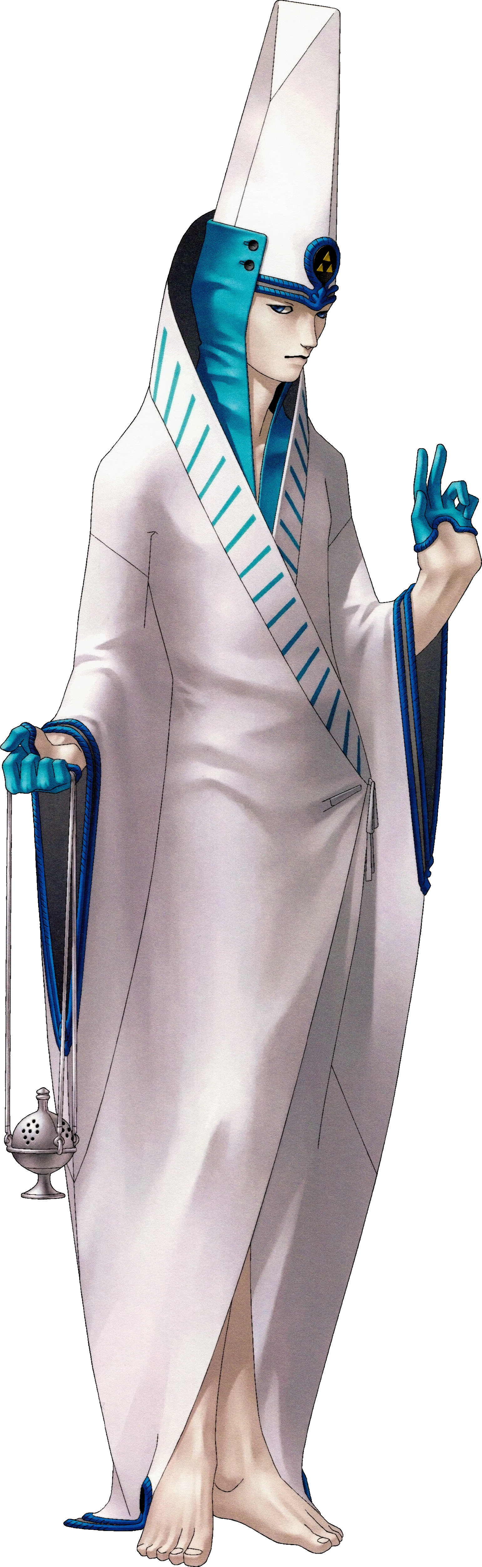 1boy absurdres barefoot commentary dark_persona english_commentary full_body hat highres holding incense incense_burner kazuma_kaneko male_focus official_art photoshop_(medium) scan shin_megami_tensei shin_megami_tensei_i simple_background solo third-party_source transparent_background yuji_(megami_tensei)