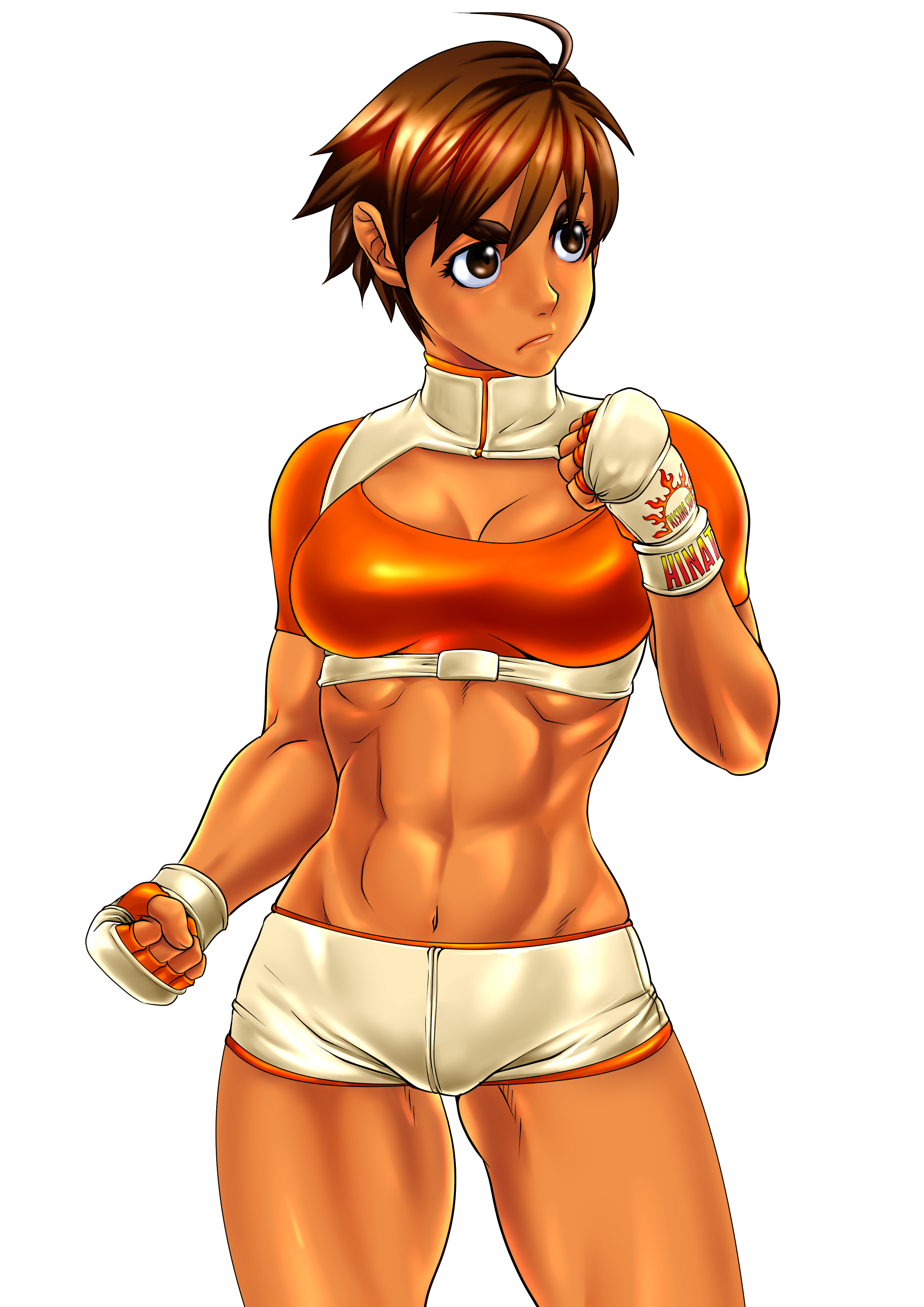 1girl asahina_hinata_(daikokuya_yenjaku) brown_eyes brown_hair clenched_hands cowboy_shot daikokuya_yenjaku fingerless_gloves gloves muscular muscular_female original solo thick_eyebrows transparent_background wrestling_outfit