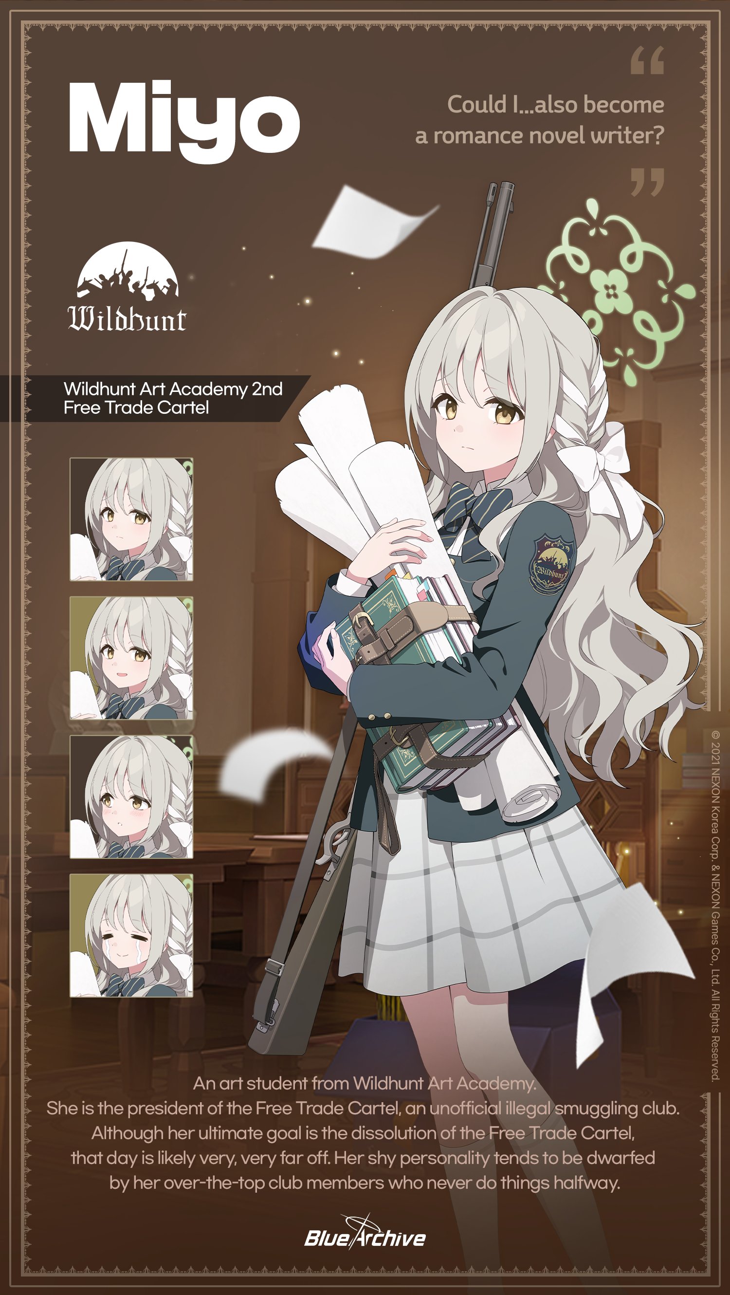 1girl absurdres blank_eyes blonde_hair blue_archive blush bolt_action book bow braid character_name closed_eyes closed_mouth commentary crying diagonal-striped_bow english_commentary green_bow green_halo green_jacket green_shoes gun hair_bow halo highres holding holding_book holding_gun holding_scroll holding_weapon jacket kneehighs long_hair looking_at_viewer miyo_(blue_archive) multiple_expressions official_art open_mouth paruru_(nexon) rifle scroll second-party_source shirt shoes skirt smile socks solo striped_bow vetterli_m1870 weapon white_bow white_shirt white_skirt white_socks yellow_eyes