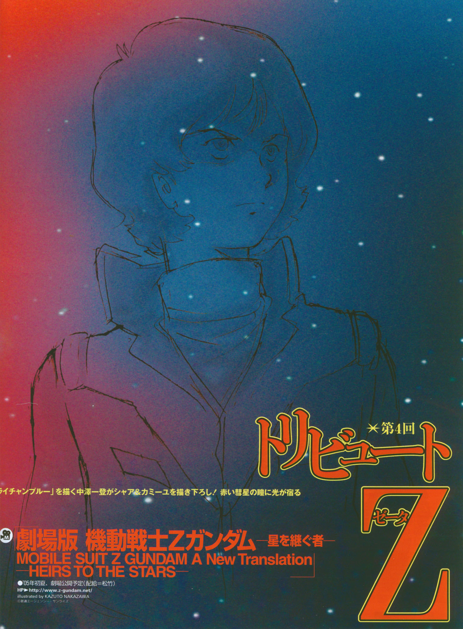 1boy aeug gundam highres kamille_bidan mixed-language_text nakazawa_kazuto official_art promotional_art scan science_fiction serious star_(sky) traditional_media translation_request turtleneck zeta_gundam zeta_gundam:_a_new_translation
