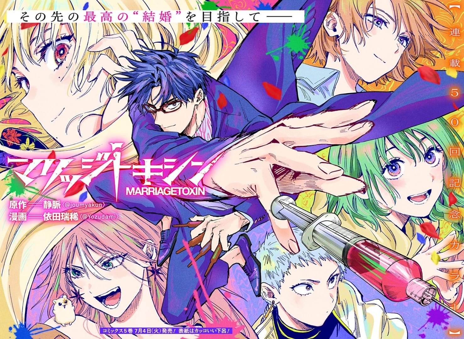 2boys 4girls arashiyama_kimie black_hair blonde_hair gero_hikaru green_eyes green_hair himekawa_kyoko kinosaki_mei marriagetoxin multiple_boys multiple_girls orange_hair red_eyes rose_hair ureshino_shiori ushio_shizuku