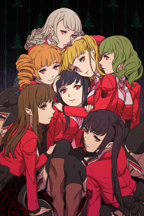 6+girls arm_grab arm_support asmodeus_(umineko) asymmetrical_hair beelzebub_(umineko) belphegor_(umineko) black_hair black_legwear blazer blonde_hair boots brown_hair drill_hair egawa_satsuki garter_straps green_hair hand_on_head hand_on_leg hand_on_shoulder holding_another's_arm jacket leviathan_(umineko) long_hair lucifer_(umineko) mammon_(umineko) multiple_girls nail_polish necktie no_naku_koro_ni_(series) pink_necktie ponytail red_eyes ryukishi07 satan_(umineko) siblings side_ponytail silver_hair sisters sitting smile stakes_of_purgatory thighhighs twin_drills twintails umineko_no_naku_koro_ni