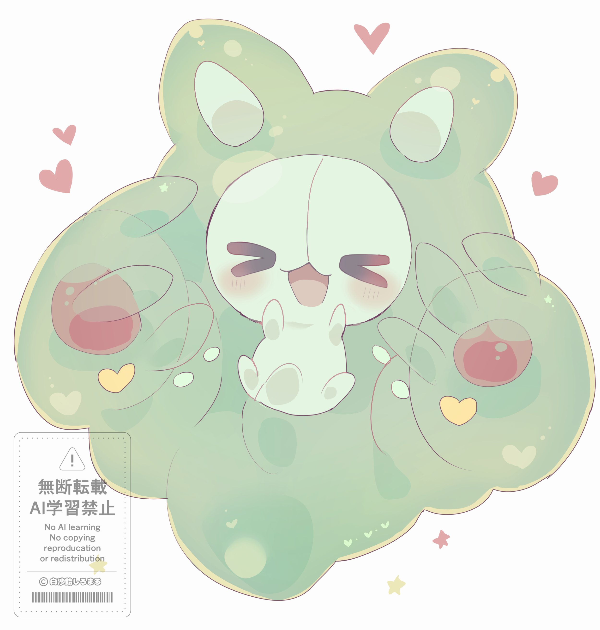 >_< absurdres blush closed_eyes commentary_request gen_5_pokemon heart highres nintendo no_humans open_mouth pokemon pokemon_(creature) pokemon_focus reuniclus shirasuame_shiromaru simple_background smile white_background
