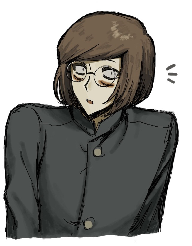 1boy brown_hair commentary_request cropped_torso gakuran glasses long_sleeves looking_at_viewer luther_von_ivory male_focus open_mouth randal's_friends round_eyewear school_uniform short_hair solo white_background yano_(zri_088)