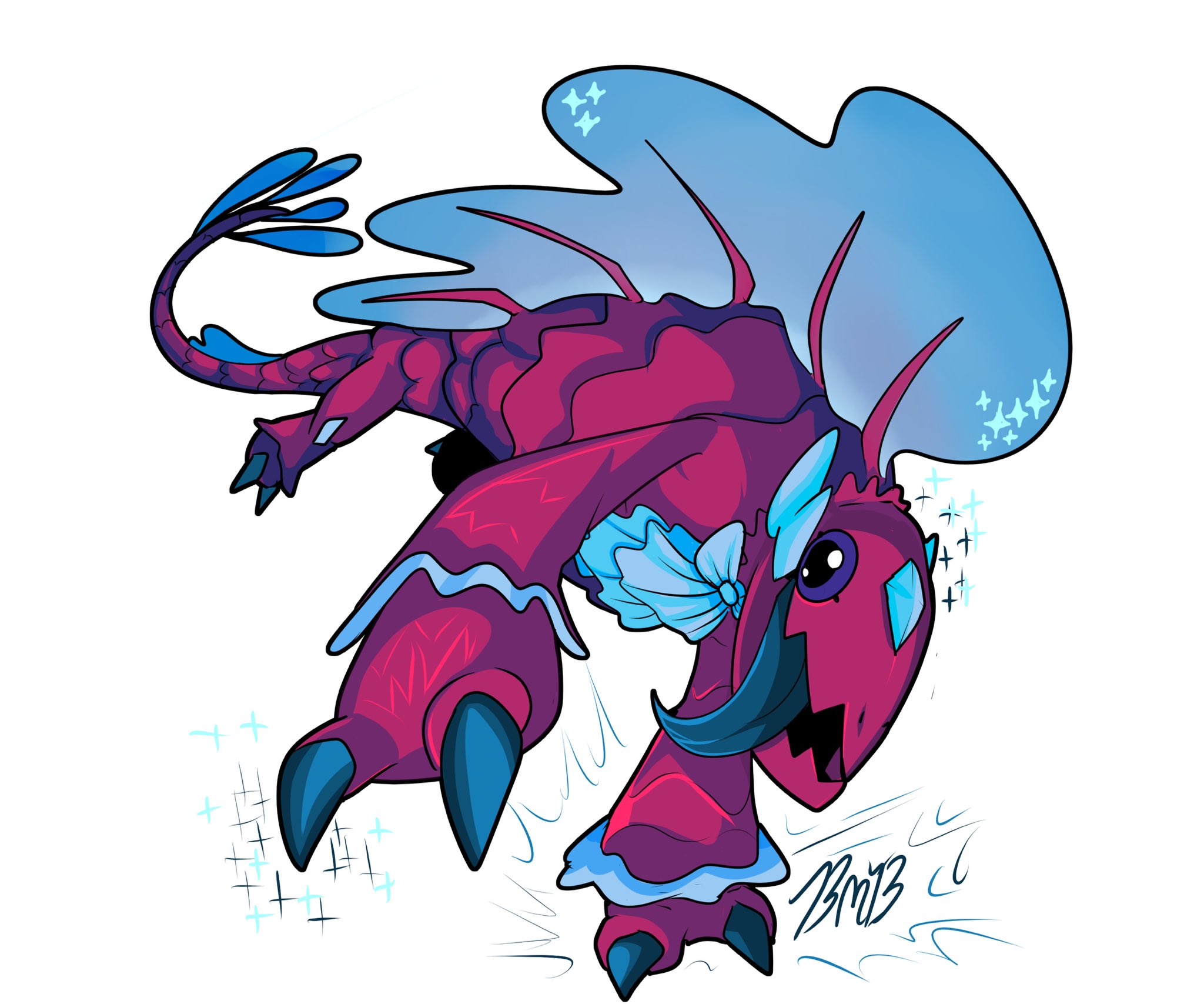 blue_eyes bmbanimation claws digimon digimon_(creature) dimetromon ribbon tail white_background