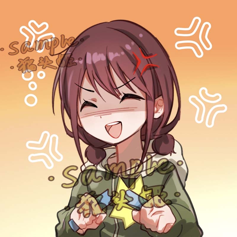 1girl ^_^ anger_vein brown_hair catowjeemson chinese_commentary closed_eyes commentary_request girls_band_cry gradient_background iseri_nina low_twintails open_mouth orange_background short_hair short_twintails solo teeth twintails upper_teeth_only