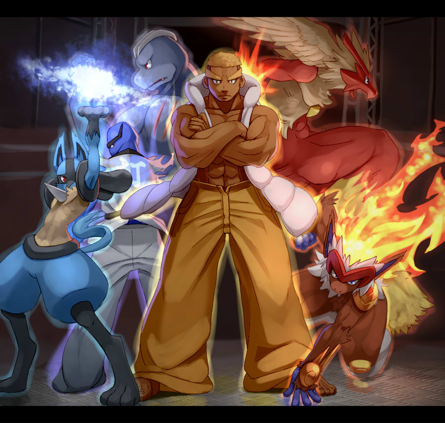 10s birry blaziken dark_skin elite_four gen_1_pokemon gen_3_pokemon gen_4_pokemon gen_5_pokemon infernape lucario machamp male_focus marshal_(pokemon) nintendo pokemon pokemon_(creature) pokemon_black_and_white sawk