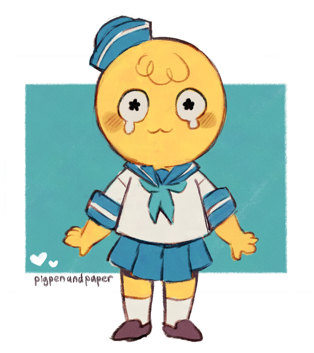 1other artist_name blue_background blue_hat blue_neckerchief blue_sailor_collar blue_skirt brown_shoes commentary_request full_body hat heart neckerchief numbers_(pigpenandpaper) peak_(game) pleated_skirt sailor_collar sailor_hat school_uniform scout_(peak) serafuku shirt shoes short_sleeves skirt socks solo standing teardrop tilted_headwear two-tone_background white_background white_shirt white_socks