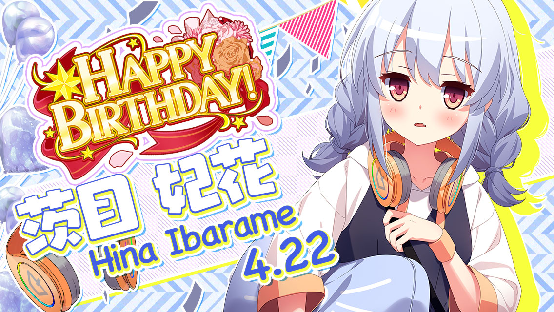 1girl bad_id balloon bilingual_text black_jacket braid braided_twintails character_name confetti double-parted_bangs english_text fang flower game_cg happy_birthday headphones headphones_around_neck heart_balloon holding holding_pillow hood hood_down hooded_jacket ibarame_hina idol_wars jacket looking_at_viewer low_twintails medium_hair mixed-language_text multicolored_jacket official_art open_mouth orange_flower orange_rose pillow plaid_background purple_hair red_eyes red_ribbon ribbon rose second-party_source short_twintails sidelocks solo star_(symbol) string_of_flags twintails two-tone_jacket unworn_headphones upper_body white_jacket wristband