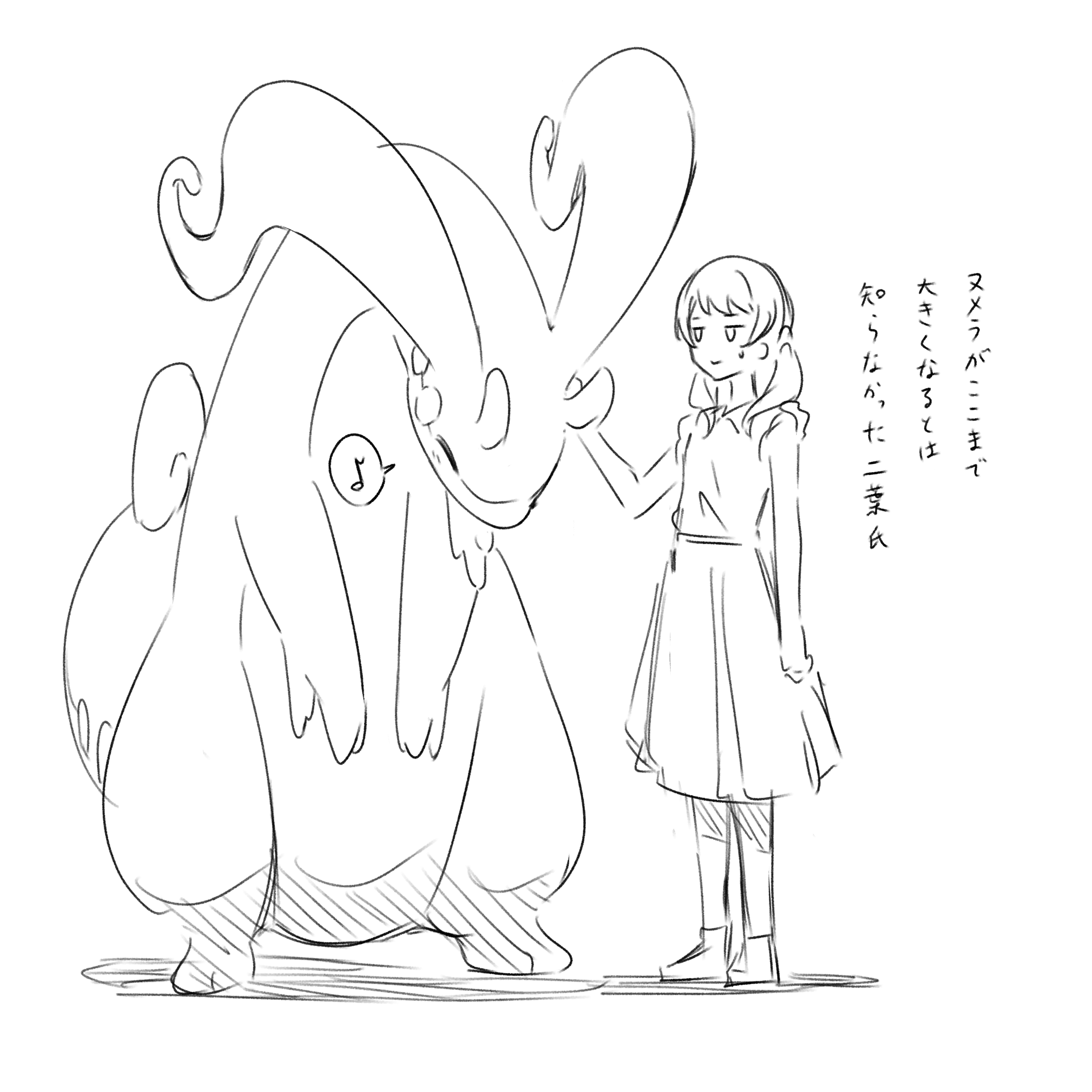 1girl absurdres bang_dream! bang_dream!_girls_band_party! character_request closed_mouth commentary_request greyscale highres jitome kanade_(kanade_3344) long_hair maruyama_aya monochrome nintendo pokemon pokemon_(creature) shirt simple_background skirt sleeveless sleeveless_shirt standing translation_request white_background