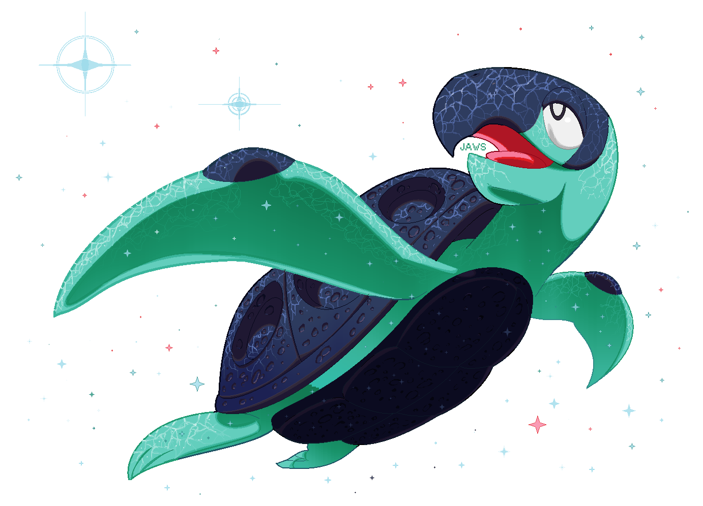 alternate_color animal_focus black_eyes bright_pupils commentary full_body gen_5_pokemon making-of_available microsoft_paint_(medium) nintendo no_humans open_mouth pokemon pokemon_(creature) pokemon_focus sea_turtle shiny_pokemon solo sparkle tirtouga transparent_background turtle white_pupils willow-pendragon