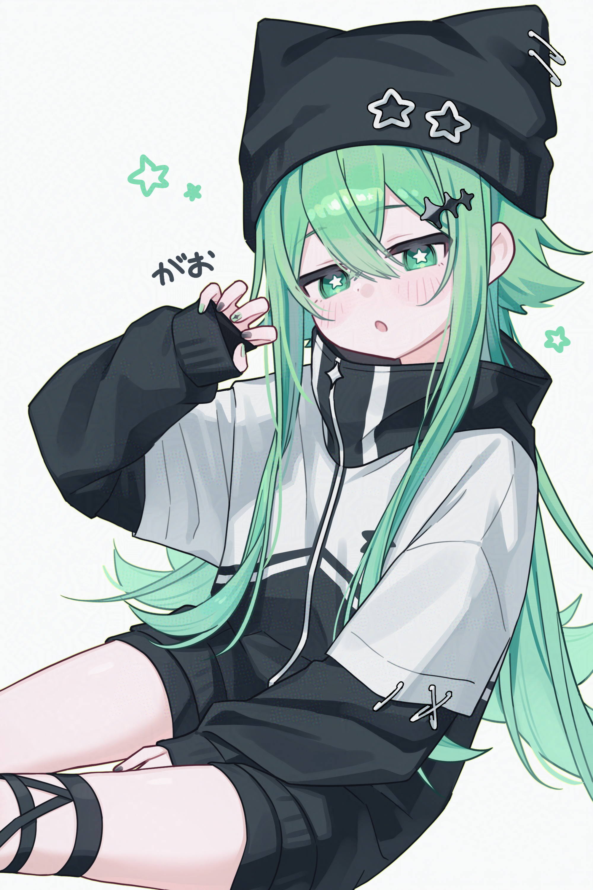 &{ID:13642051 CreatedAt:Thu Mar 12 08:15:24 -0500 2026 Score:0 Width:2000 Height:3000 MD5:eb19f8a24b2f0800dd5f172802b01cf5 Directory:eb/19 Image:eb19f8a24b2f0800dd5f172802b01cf5.png Rating:general Source:https://www.pixiv.net/artworks/142216243 Change:1773321324 Owner:danbooru CreatorID:6498 ParentID:0 Sample:1 PreviewHeight:350 PreviewWidth:233 Tags:1girl :o absurdres animal_hat arm_between_legs beanie black_hat black_jacket black_shorts cat_hat claw_pose commentary_request green_eyes green_hair hair_between_eyes hair_flaps hat hat_ornament highres jacket light_blush long_hair long_sleeves looking_at_viewer multicolored_jacket namin_(namin_star) nanase_(namin) original parted_lips short_shorts shorts sidelocks simple_background sitting sleeves_past_wrists solo star-shaped_pupils star_(symbol) star_hat_ornament symbol-shaped_pupils two-tone_jacket very_long_hair white_background white_jacket Title: HasNotes:false HasComments:false FileURL:https://img2.gelbooru.com/images/eb/19/eb19f8a24b2f0800dd5f172802b01cf5.png PreviewURL:https://gelbooru.com/thumbnails/eb/19/thumbnail_eb19f8a24b2f0800dd5f172802b01cf5.jpg SampleURL:https://img2.gelbooru.com/samples/eb/19/sample_eb19f8a24b2f0800dd5f172802b01cf5.jpg SampleHeight:1275 SampleWidth:850 Status:active PostLocked:0 HasChildren:false IsVideo:false DisplayDate:12.03.2026 08:15}