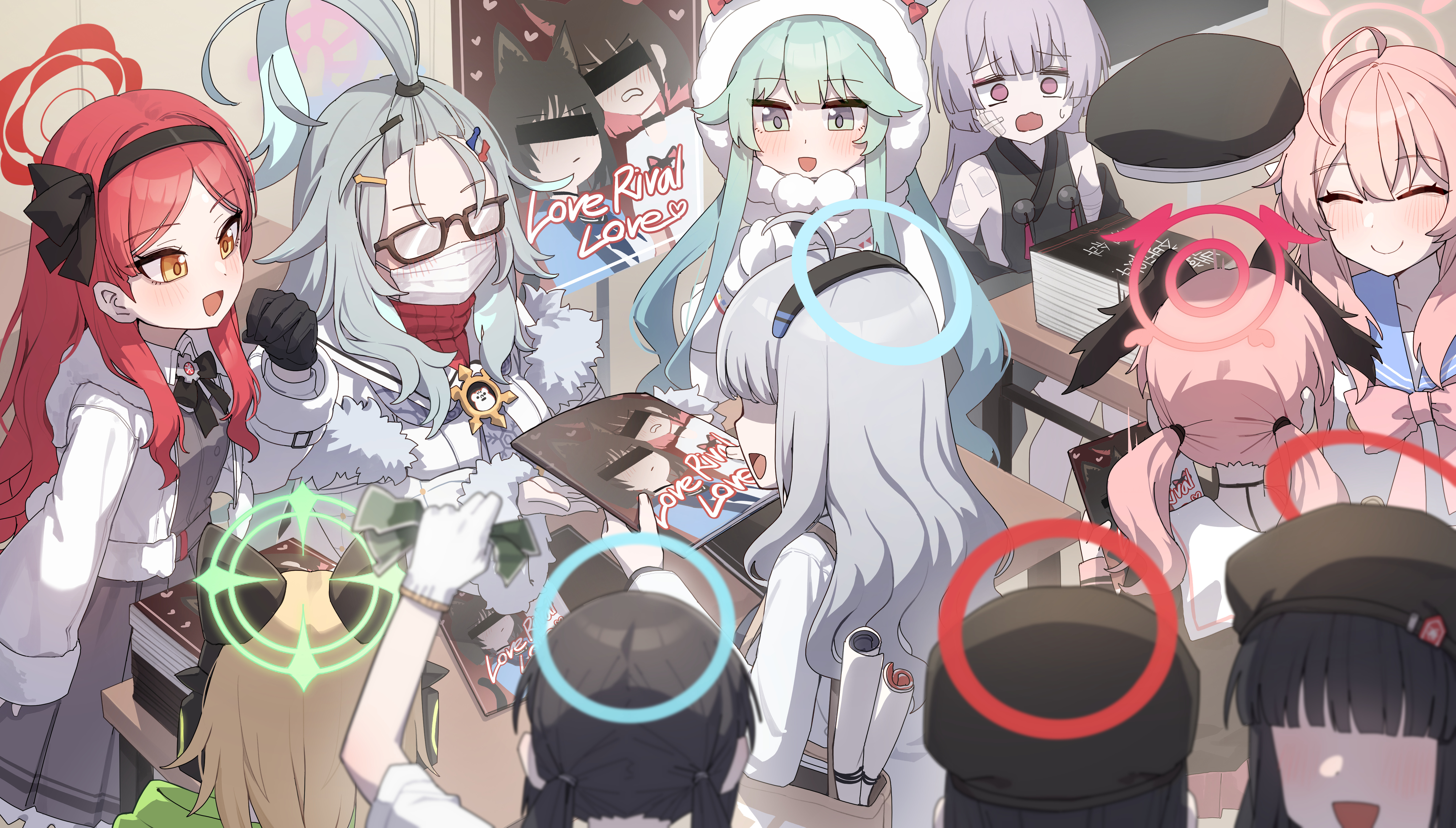 absurdres animal_ears blonde_hair blue_archive blue_eyes cat_ears cat_girl green_hair hanako_(blue_archive) highres kazusa_(blue_archive) kikyou_(blue_archive) koharu_(blue_archive) kokukyukeo long_hair meru_(blue_archive) midori_(blue_archive) momiji_(blue_archive) pink_eyes pink_hair purple_hair red_hair shuro_(blue_archive) takane_(blue_archive) yellow_eyes yuri
