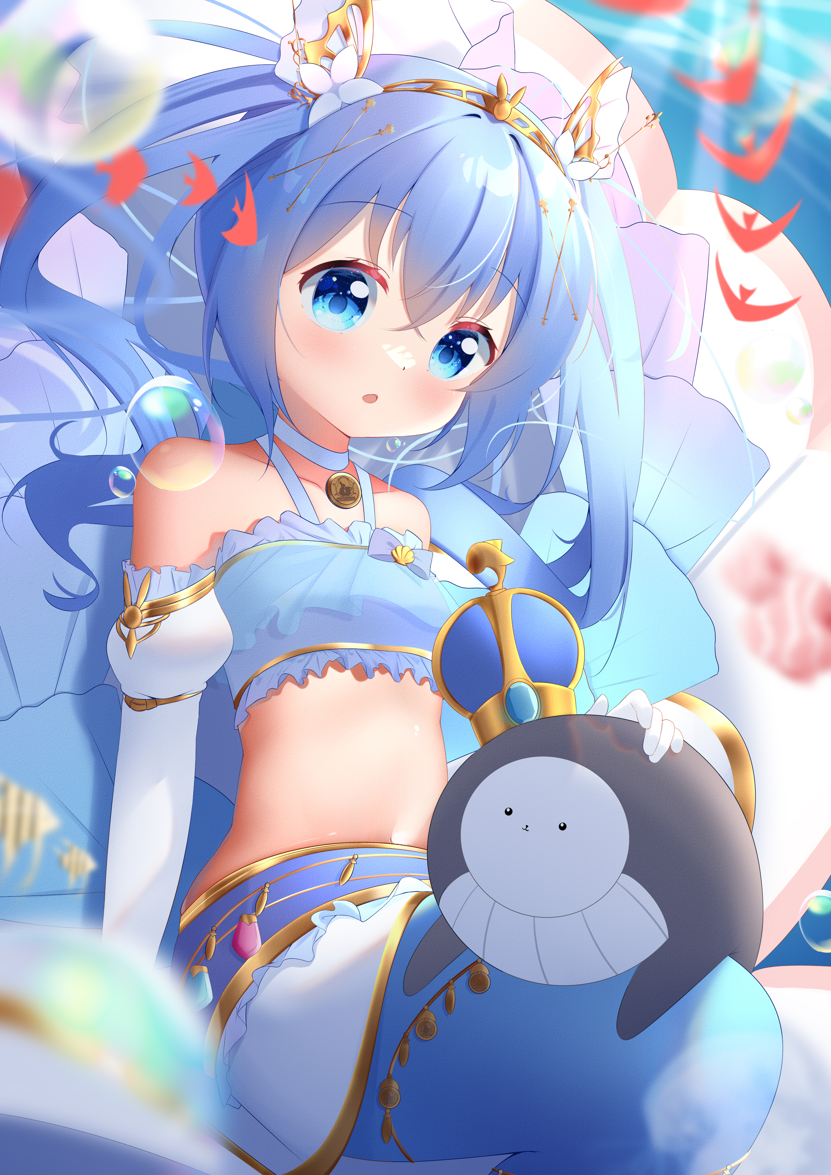 1girl absurdres blue_eyes blue_hair child commentary_request dian_zhi_sang elbow_gloves gloves gochuumon_wa_usagi_desu_ka? highres kafuu_chino looking_at_viewer mermaid monster_girl monsterification open_mouth white_gloves