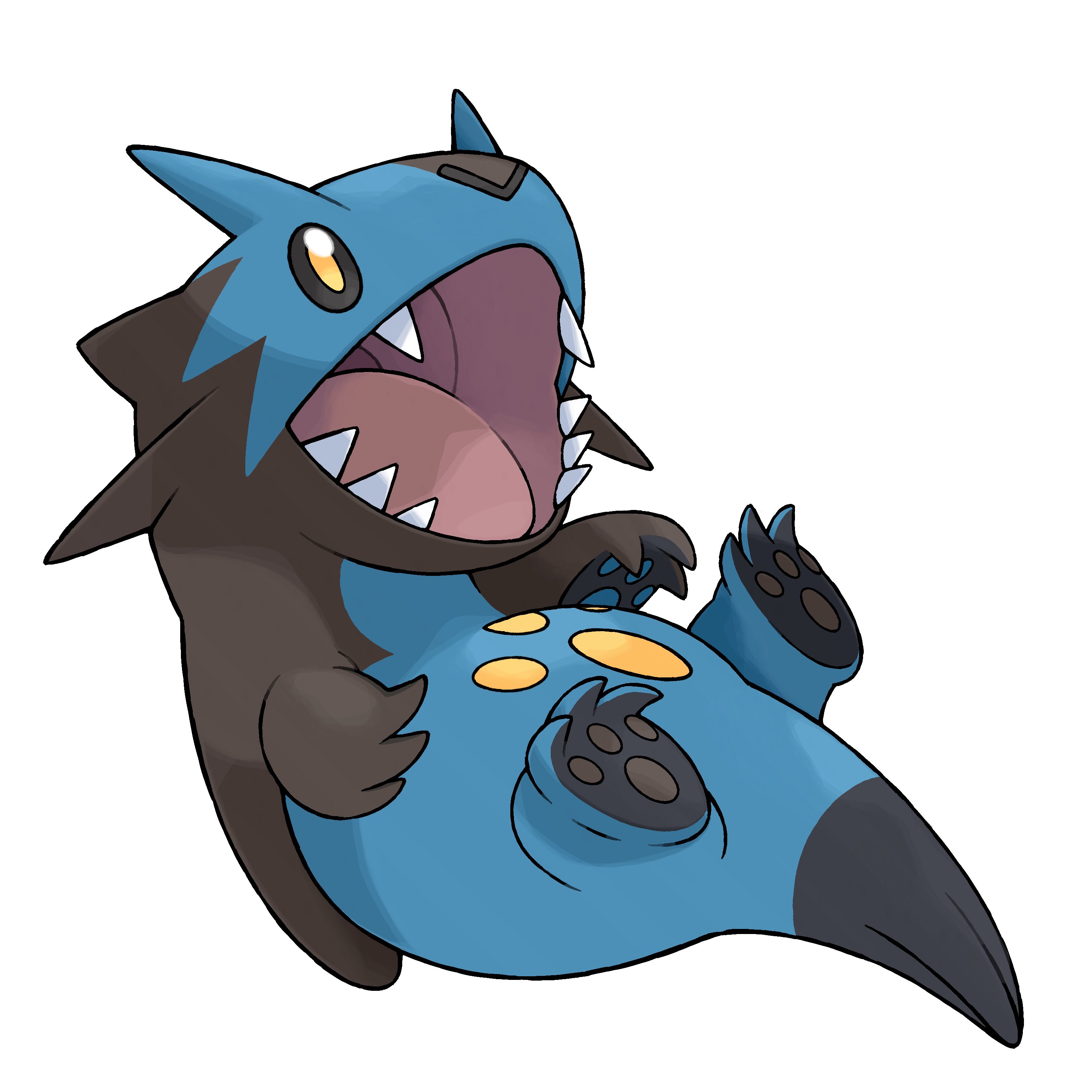 absurdres black_fur blue_fur fakemon greg_andrade highres lying nintendo no_humans on_back open_mouth original pokemon pokemon_(creature) sharp_teeth simple_background solo sugimori_ken_(style) tail teeth two-tone_fur white_background