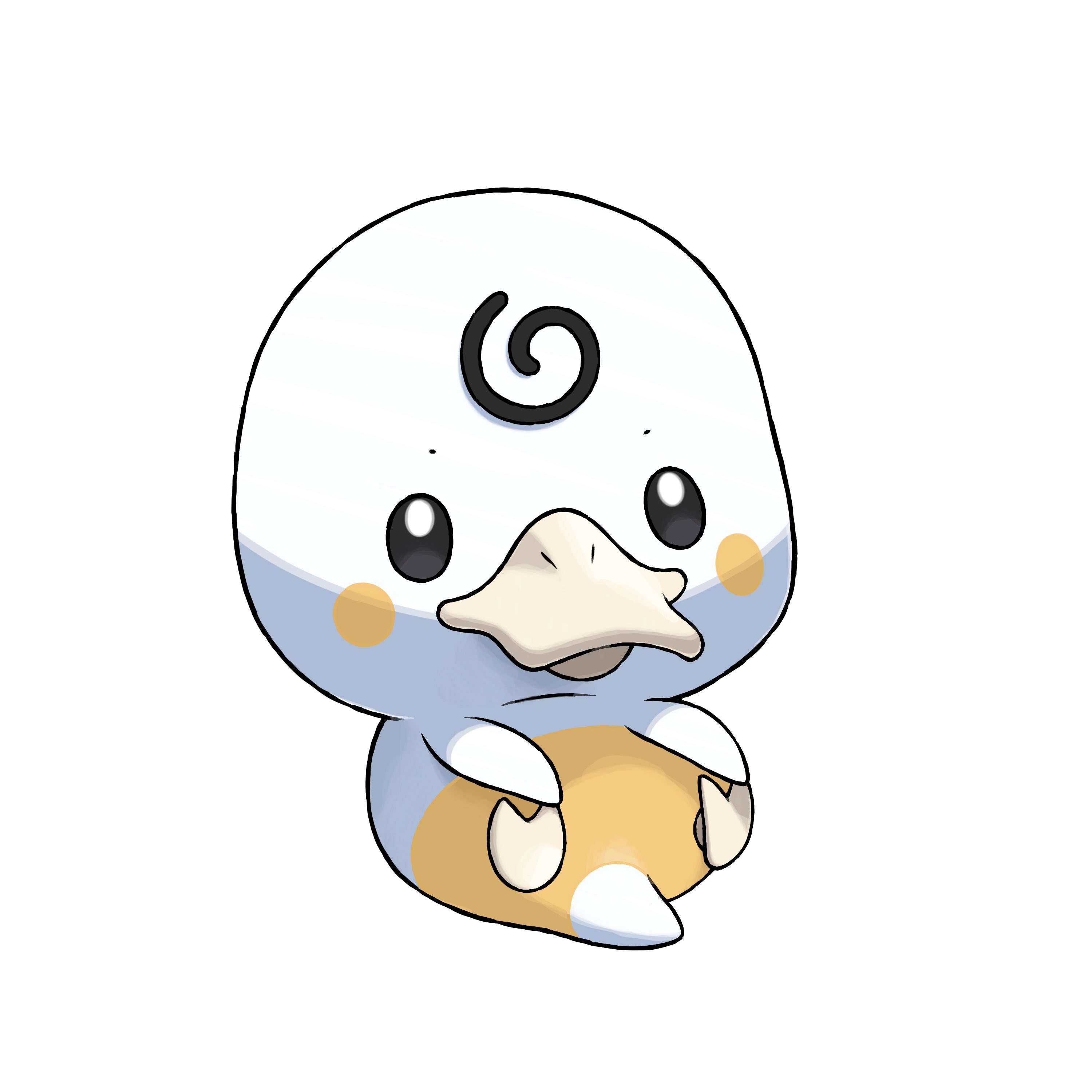 absurdres bird blush_stickers duck facial_mark fakemon forehead_mark greg_andrade highres looking_at_viewer nintendo no_humans original pokemon pokemon_(creature) simple_background solo sugimori_ken_(style) swirl tail two-tone_fur white_background white_fur yellow_fur
