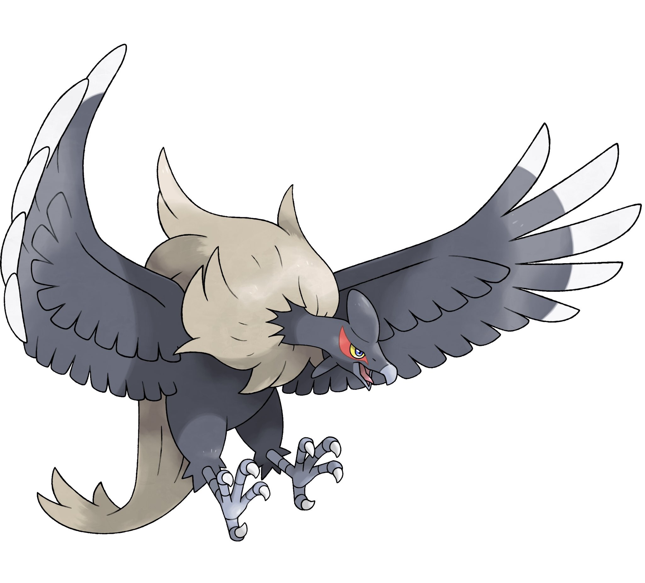 bird condor fakemon feathered_wings flying greg_andrade grey_wings highres nintendo no_humans open_mouth original pokemon pokemon_(creature) simple_background solo sugimori_ken_(style) white_background wings