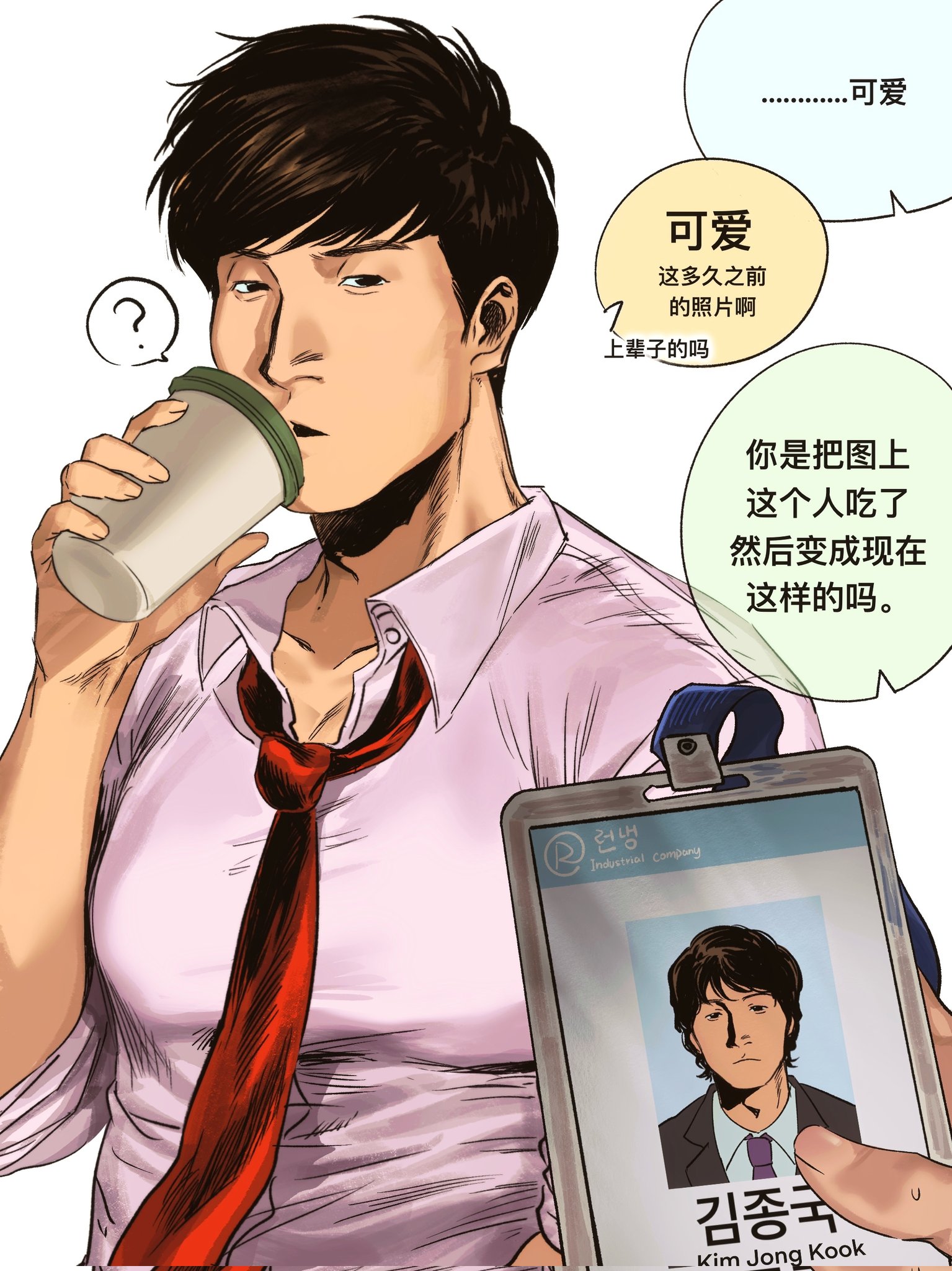 1boy 1other borderline7839 brown_hair chinese_commentary dress_shirt drinking kim_jong_kook necktie real_life running_man shirt