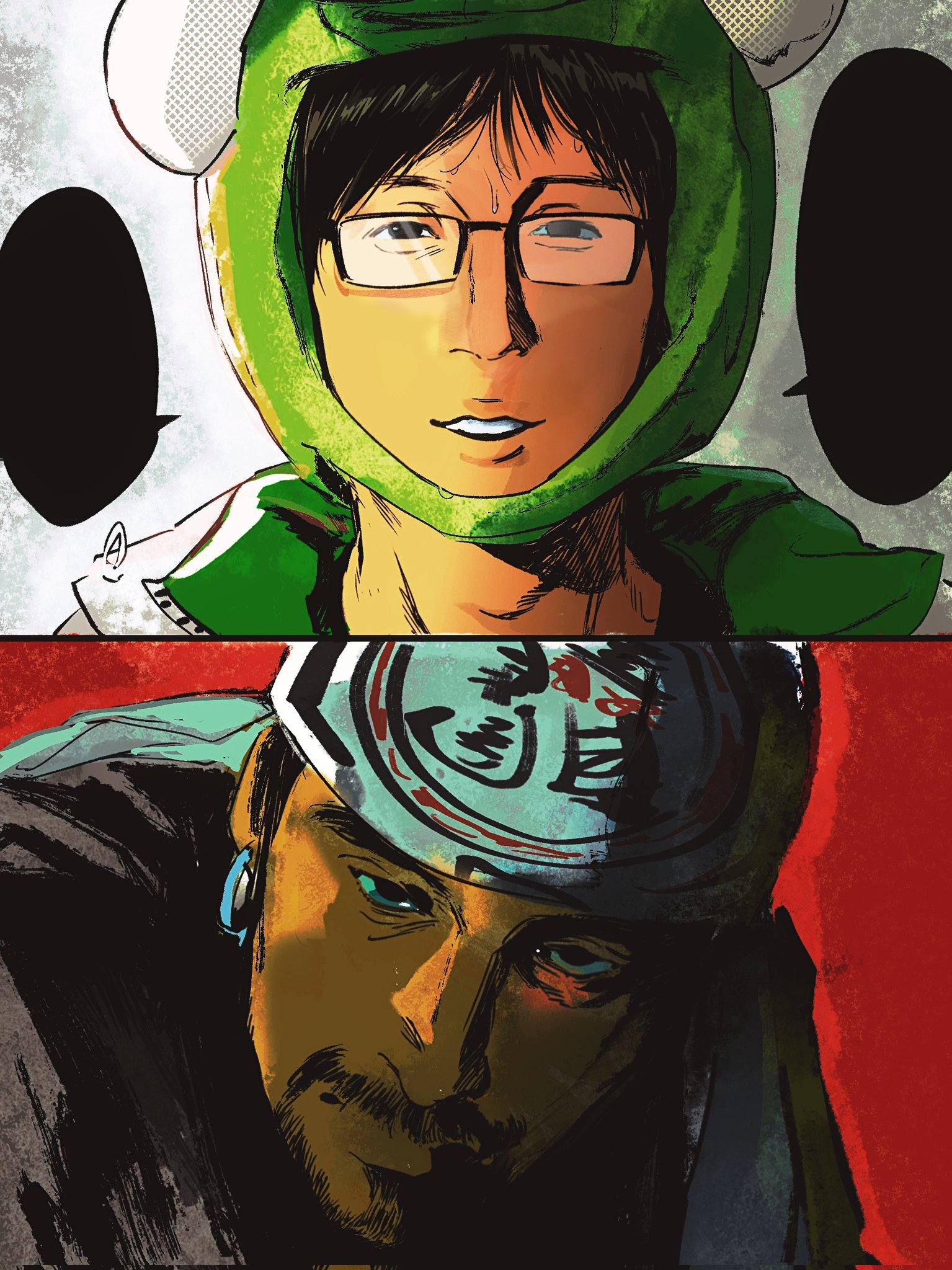 animal_hat bandana black_hair borderline7839 choi_min-soo earrings facial_hair glasses hat jewelry real_life running_man yoo_jae_seok