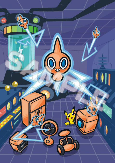 artist_request blue_eyes cable electric_fan floating gen_1_pokemon gen_4_pokemon grin indoors lawnmower microwave nintendo no_humans official_art open_mouth pikachu pokemon pokemon_(creature) pokemon_focus refrigerator rotom rotom_(normal) sample_watermark smile teeth third-party_source washing_machine watermark