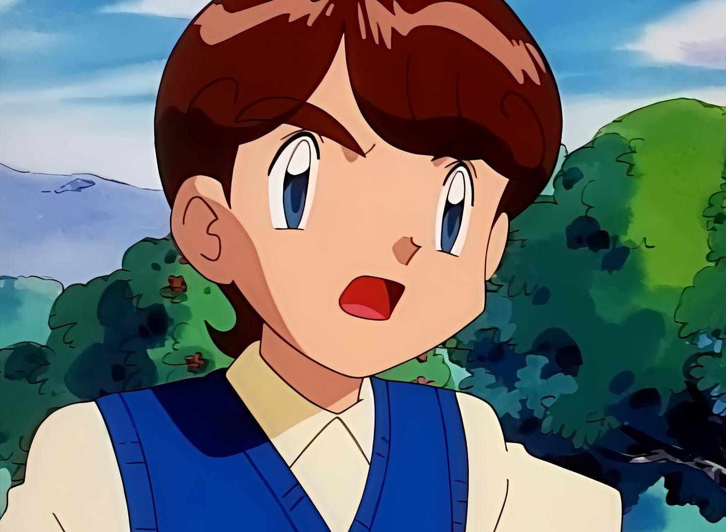 angry blue_eyes nintendo pokemon pokemon_(anime) pokemon_(classic_anime) ralph_(pokemon_ep100) sky tree upper_body