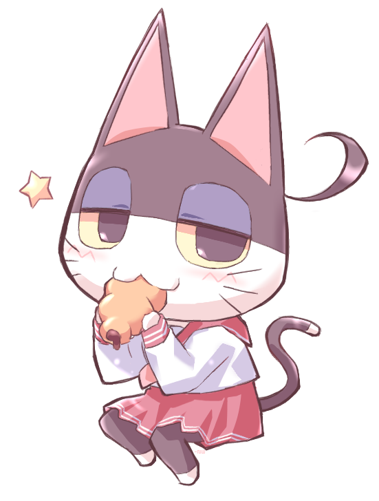 1boy :3 animal_crossing animal_ears black_eyes cat_boy cat_ears cat_tail chibi chibi_only chibikemo chocolate_cornet colored_sclera cosplay drawpile_(medium) eating food full_body furry furry_male long_sleeves looking_at_viewer lucky_star male_focus negiwave2000 nintendo paint_chat_(medium) pink_sailor_collar pink_skirt punchy_(animal_crossing) ryouou_school_uniform sailor_collar school_uniform serafuku shirt side_ahoge simple_background sitting skirt solo star_(symbol) tail whiskers white_background white_shirt yellow_sclera