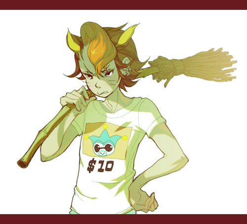 1boy ace_attorney adam's_apple apollo_justice:_ace_attorney broom commentary english_commentary facial_mark glaring hair_horns holding holding_broom letterboxed lowres male_focus msh shirt short_hair solo t-shirt upper_body whisker_markings wocky_kitaki