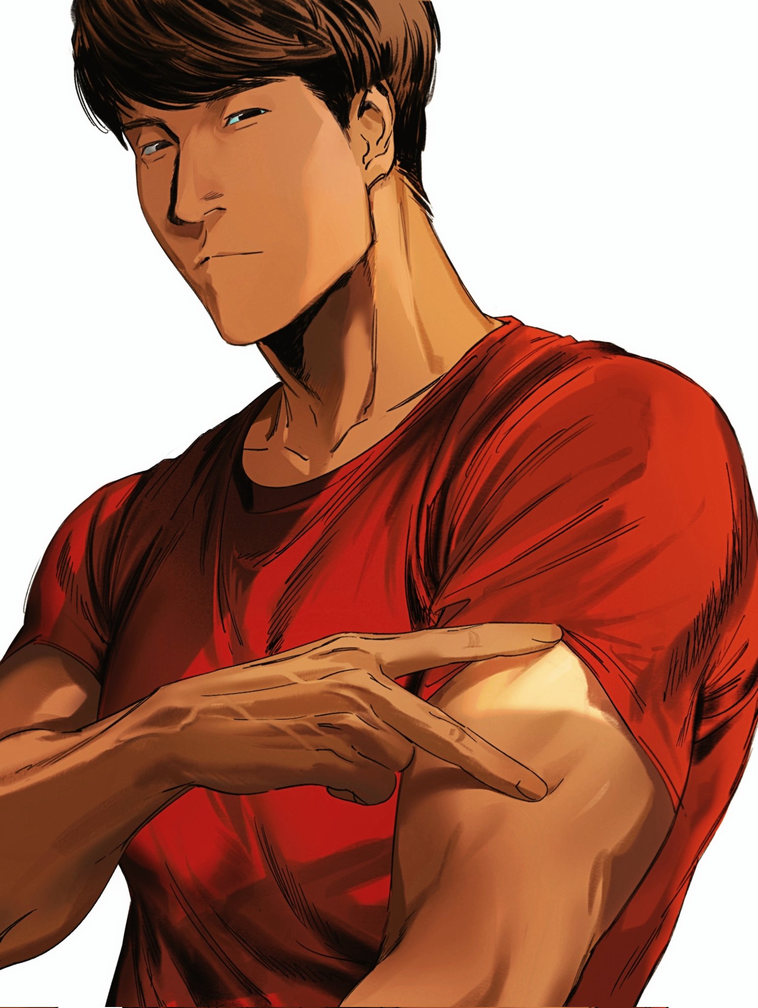 1boy borderline7839 brown_hair kim_jong_kook real_life red_shirt running_man shirt t-shirt tan tanline veins