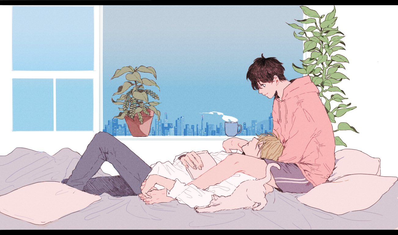 &{ID:13657254 CreatedAt:Sat Mar 14 13:46:07 -0500 2026 Score:0 Width:1302 Height:768 MD5:6035aa5b6997f1d15865a7816e3c1c36 Directory:60/35 Image:6035aa5b6997f1d15865a7816e3c1c36.jpg Rating:general Source:https://x.com/_a_co_pi_/status/1446755390201352196 Change:1773513967 Owner:danbooru CreatorID:6498 ParentID:0 Sample:1 PreviewHeight:206 PreviewWidth:350 Tags:2boys a_co_pi ash_lynx banana_fish bed black_hair black_pants black_shorts blonde_hair book cat cat_stretch cityscape closed_mouth coffee_mug commentary_request cup drawstring from_side hood hood_down hoodie lap_pillow long_sleeves looking_at_another looking_down lying male_focus mug multiple_boys okumura_eiji on_back pants pillow plant potted_plant red_hoodie shirt shorts sitting smile steam stretching striped_clothes striped_shorts vertical-striped_clothes vertical-striped_shorts white_shirt window yaoi Title: HasNotes:false HasComments:false FileURL:https://img2.gelbooru.com/images/60/35/6035aa5b6997f1d15865a7816e3c1c36.jpg PreviewURL:https://gelbooru.com/thumbnails/60/35/thumbnail_6035aa5b6997f1d15865a7816e3c1c36.jpg SampleURL:https://img2.gelbooru.com/samples/60/35/sample_6035aa5b6997f1d15865a7816e3c1c36.jpg SampleHeight:501 SampleWidth:850 Status:active PostLocked:0 HasChildren:false IsVideo:false DisplayDate:14.03.2026 13:46}