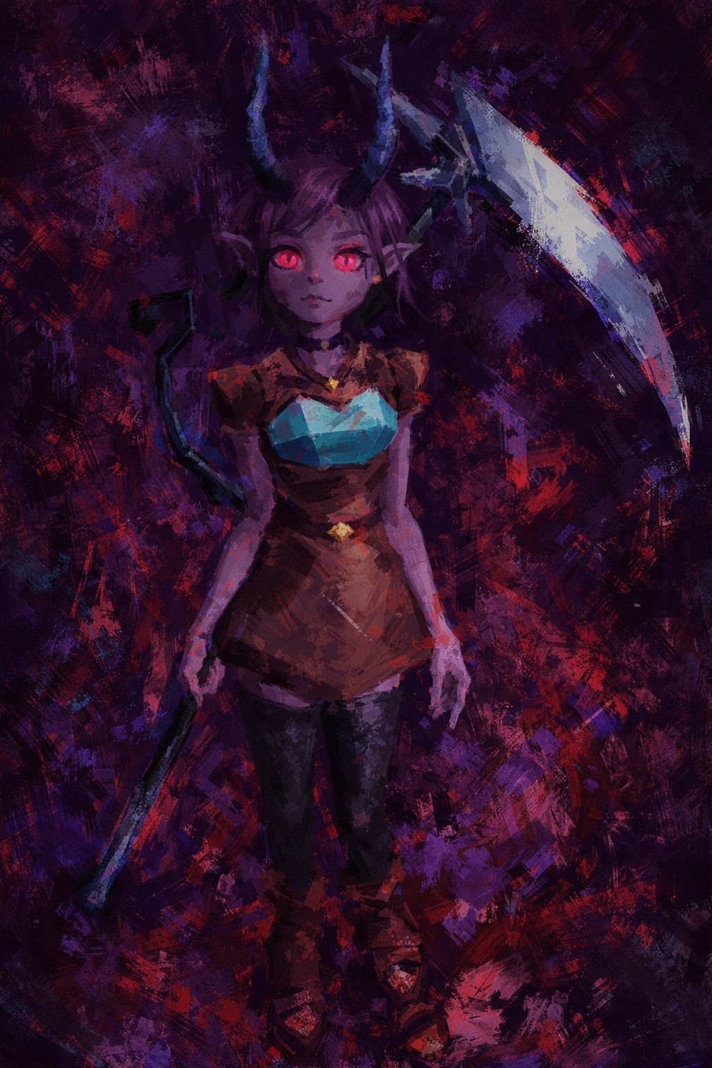 &{ID:13657399 CreatedAt:Sat Mar 14 14:16:03 -0500 2026 Score:3 Width:1024 Height:1536 MD5:825372a42741f2445993f6625a16cfca Directory:82/53 Image:825372a42741f2445993f6625a16cfca.jpg Rating:general Source:https://steamcommunity.com/sharedfiles/filedetails/?id=3653418090 Change:1773515763 Owner:danbooru CreatorID:6498 ParentID:0 Sample:0 PreviewHeight:350 PreviewWidth:233 Tags:1girl abstract_background armor artist_request belt black_choker black_tail black_thighhighs boots breastplate brown_belt brown_boots brown_dress choker closed_mouth colored_skin commentary demi_(lunacid) demon_girl demon_horns demon_tail dress english_commentary full_body highres holding holding_scythe horns lips looking_at_viewer lunacid nose pointy_ears purple_eyes purple_hair purple_horns purple_skin scythe short_hair short_sleeves slit_pupils solo standing tail thighhighs Title: HasNotes:false HasComments:false FileURL:https://img2.gelbooru.com/images/82/53/825372a42741f2445993f6625a16cfca.jpg PreviewURL:https://gelbooru.com/thumbnails/82/53/thumbnail_825372a42741f2445993f6625a16cfca.jpg SampleURL: SampleHeight:0 SampleWidth:0 Status:active PostLocked:0 HasChildren:false IsVideo:false DisplayDate:14.03.2026 14:16}