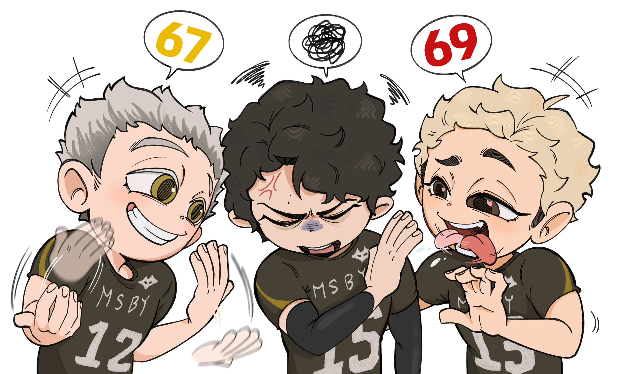&{ID:13658763 CreatedAt:Sat Mar 14 19:00:14 -0500 2026 Score:0 Width:2048 Height:1228 MD5:83083ae9d981a4bd4e384fc8f0803586 Directory:83/08 Image:83083ae9d981a4bd4e384fc8f0803586.jpg Rating:general Source:https://x.com/baboo_saekki_/status/2032929036054503558 Change:1773532814 Owner:danbooru CreatorID:6498 ParentID:0 Sample:1 PreviewHeight:209 PreviewWidth:350 Tags:3boys 67_(meme) 69_(meme) anger_vein annoyed baboo_saekki black_hair blonde_hair bokuto_koutarou commentary deformed grey_hair haikyuu!! heart heart-shaped_pupils highres implied_yaoi male_focus meme miya_atsumu mole mole_on_forehead msby_black_jackals_volleyball_uniform multiple_boys sakusa_kiyoomi short_hair sideburns simple_background smile spoken_number spoken_squiggle sportswear squiggle symbol-shaped_pupils tongue tongue_out untranslatable_commentary upper_body volleyball_uniform white_background Title: HasNotes:false HasComments:false FileURL:https://img2.gelbooru.com/images/83/08/83083ae9d981a4bd4e384fc8f0803586.jpg PreviewURL:https://gelbooru.com/thumbnails/83/08/thumbnail_83083ae9d981a4bd4e384fc8f0803586.jpg SampleURL:https://img2.gelbooru.com/samples/83/08/sample_83083ae9d981a4bd4e384fc8f0803586.jpg SampleHeight:510 SampleWidth:850 Status:active PostLocked:0 HasChildren:false IsVideo:false DisplayDate:14.03.2026 19:00}