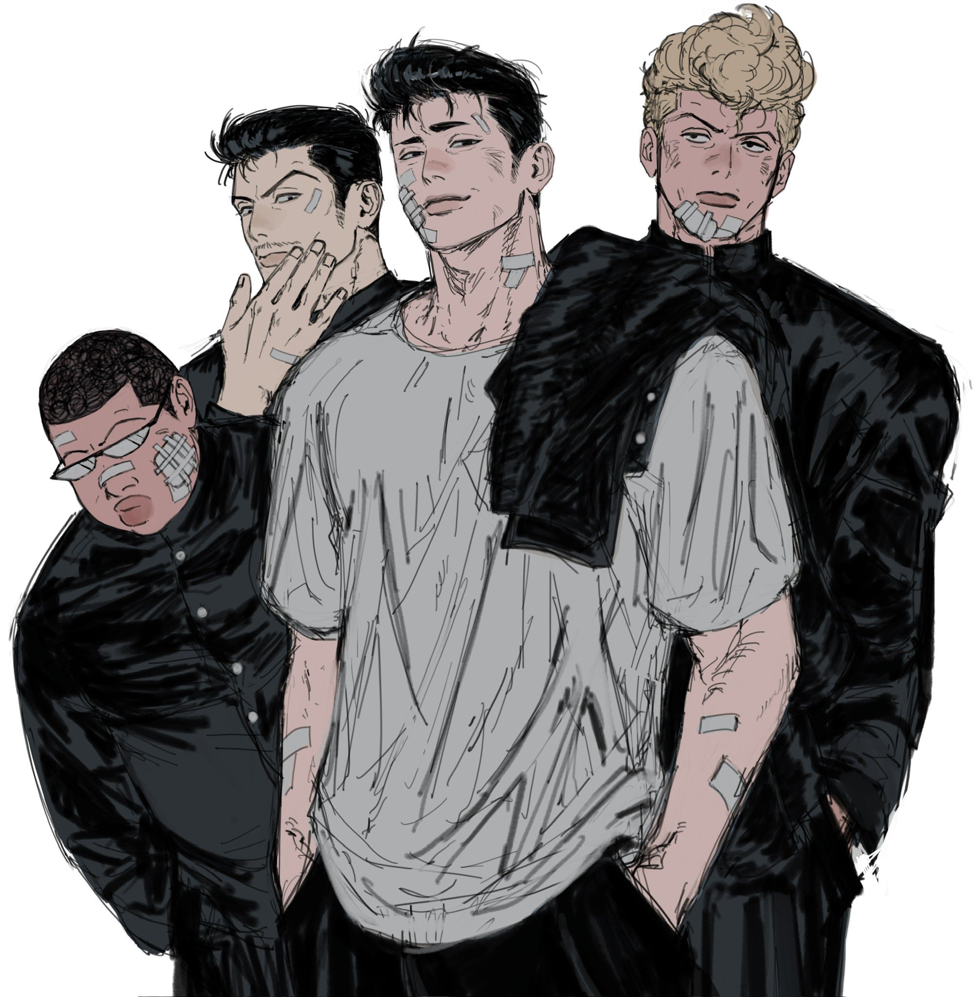 &{ID:13665622 CreatedAt:Sun Mar 15 18:45:05 -0500 2026 Score:0 Width:2001 Height:2048 MD5:ae31ee03ad5db5f32bbc12b24d4b3273 Directory:ae/31 Image:ae31ee03ad5db5f32bbc12b24d4b3273.jpg Rating:general Source:https://x.com/junkboh/status/1828486754807984309 Change:1773728260 Owner:danbooru CreatorID:6498 ParentID:0 Sample:1 PreviewHeight:350 PreviewWidth:341 Tags:4boys bandaid bandaid_on_arm bandaid_on_cheek bandaid_on_face bandaid_on_hand bandaid_on_neck black_hair black_jacket black_pants blonde_hair bruise bruise_on_face closed_mouth crossed_bandaids facial_hair fat fat_man gakuran glasses hair_slicked_back hand_on_own_face hands_in_pockets highres injury jacket jacket_on_shoulders junkboh male_focus mito_youhei multiple_boys mustache noma_chuuichirou ookusu_yuuji pants pompadour school_uniform shirt short_hair slam_dunk_(series) smile smirk t-shirt takamiya_nozomi thick_lips very_short_hair white_background white_shirt Title: HasNotes:false HasComments:false FileURL:https://img2.gelbooru.com/images/ae/31/ae31ee03ad5db5f32bbc12b24d4b3273.jpg PreviewURL:https://gelbooru.com/thumbnails/ae/31/thumbnail_ae31ee03ad5db5f32bbc12b24d4b3273.jpg SampleURL:https://img2.gelbooru.com/samples/ae/31/sample_ae31ee03ad5db5f32bbc12b24d4b3273.jpg SampleHeight:870 SampleWidth:850 Status:active PostLocked:0 HasChildren:false IsVideo:false DisplayDate:15.03.2026 18:45}