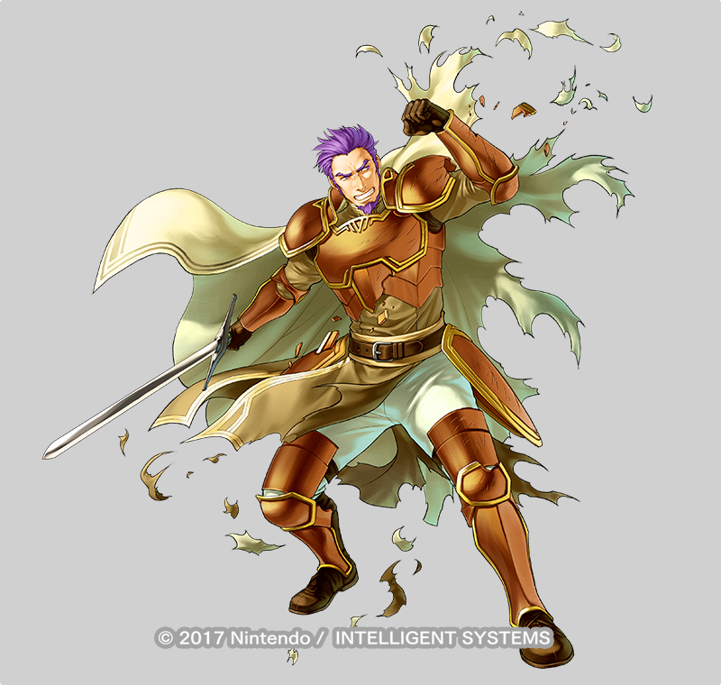 1boy armor battle_damage belt boots breastplate brown_armor brown_belt brown_gloves brown_pants brown_shirt cape clenched_teeth commentary_request damaged facial_hair fire_emblem fire_emblem:_the_blazing_blade fire_emblem_heroes full_body gloves holding holding_sword holding_weapon kita_senri long_sleeves male_focus marcus_(fire_emblem) nintendo official_art open_mouth pants purple_hair shirt short_hair shoulder_armor solo sword teeth torn_cape torn_clothes weapon white_cape