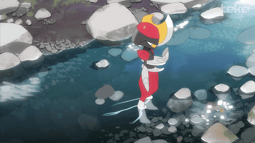 2others animated animated_gif arm_blade bisharp black_helmet black_trim commentary dappled_sunlight dirt facing_another fleeing floating flying following gen_5_pokemon gen_7_pokemon happy helmet jumping kartana multiple_others nintendo outdoors pawniard pokemon pokemon_(creature) pokemon_focus red_helmet red_trim river running shaking shaking_head shoulder_pads side-by-side splashing sunlight teke throwing turning_around turning_head two-tone_helmet ultra_beast wading water watermark weapon wet