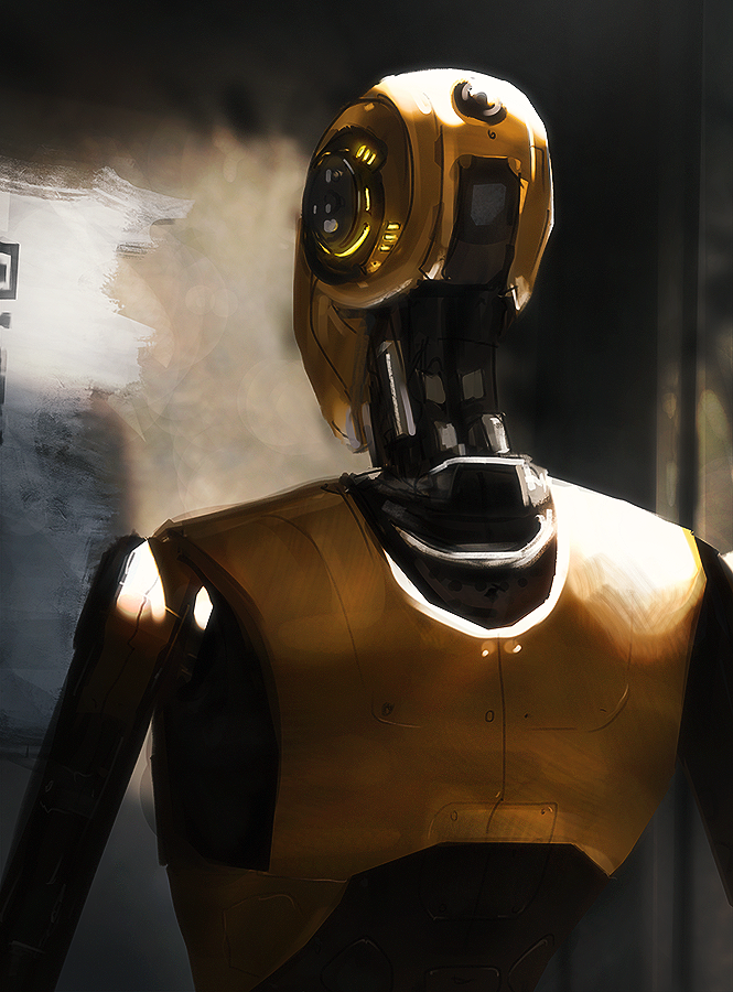 1other art_study black_skin color_study colored_skin commentary english_commentary from_behind gold_skin humanoid_robot looking_at_painting mrmichaelissebastian multicolored_skin painting_(object) qr_code robot solo standing the_talos_principle_(series) the_talos_principle_1 two-tone_skin upper_body