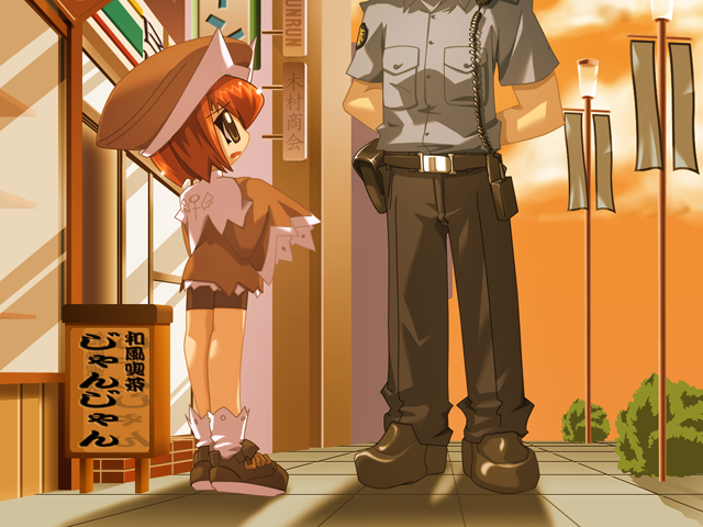&{ID:13677935 CreatedAt:Tue Mar 17 21:30:51 -0500 2026 Score:0 Width:640 Height:480 MD5:4e9be802a63d31c4db1bd81a094bb888 Directory:4e/9b Image:4e9be802a63d31c4db1bd81a094bb888.png Rating:general Source:game cg Change:1773801051 Owner:danbooru CreatorID:6498 ParentID:0 Sample:0 PreviewHeight:262 PreviewWidth:350 Tags:1boy 1girl 2000s_(style) arms_behind_back belt belt_pouch bike_shorts billboard black_belt black_pants blue_shirt brown_eyes brown_shirt brown_shoes capelet cloud evening from_side full_body game_cg hands_up hat head_out_of_frame height_difference kenki_fujioka lamppost long_sleeves majo_no_ochakai nee_(majo_no_ochakai) non-web_source official_art open_mouth orange_hair pants police police_uniform policeman pouch raised_inner_eyebrows shirt shoes short_hair short_sleeves sidelocks sky sleeves_past_fingers sleeves_past_wrists socks standing town variant_set wavy_mouth white_capelet white_socks wide_sleeves Title: HasNotes:false HasComments:false FileURL:https://img2.gelbooru.com/images/4e/9b/4e9be802a63d31c4db1bd81a094bb888.png PreviewURL:https://gelbooru.com/thumbnails/4e/9b/thumbnail_4e9be802a63d31c4db1bd81a094bb888.jpg SampleURL: SampleHeight:0 SampleWidth:0 Status:active PostLocked:0 HasChildren:false IsVideo:false DisplayDate:17.03.2026 21:30}