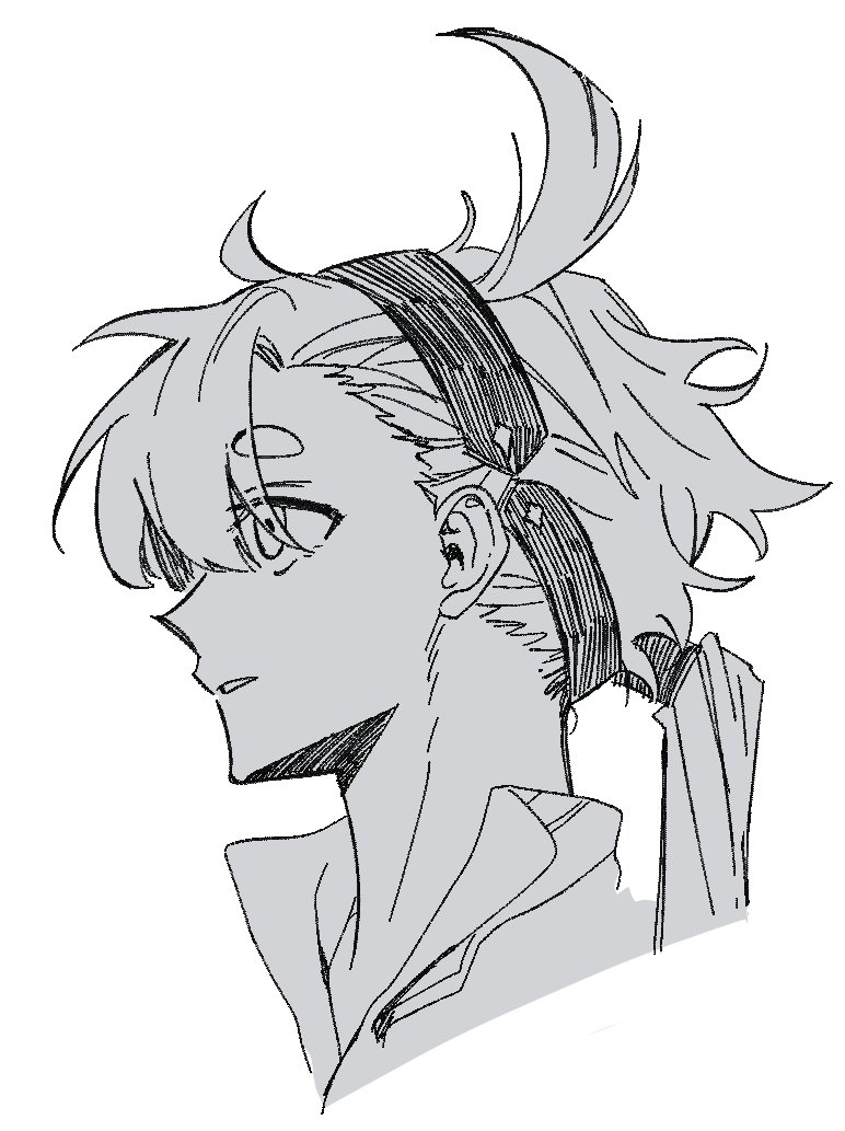 108iob 1girl commentary_request greyscale gundam gundam_suisei_no_majo hairband korean_commentary monochrome parted_lips ponytail portrait solo suletta_mercury thick_eyebrows