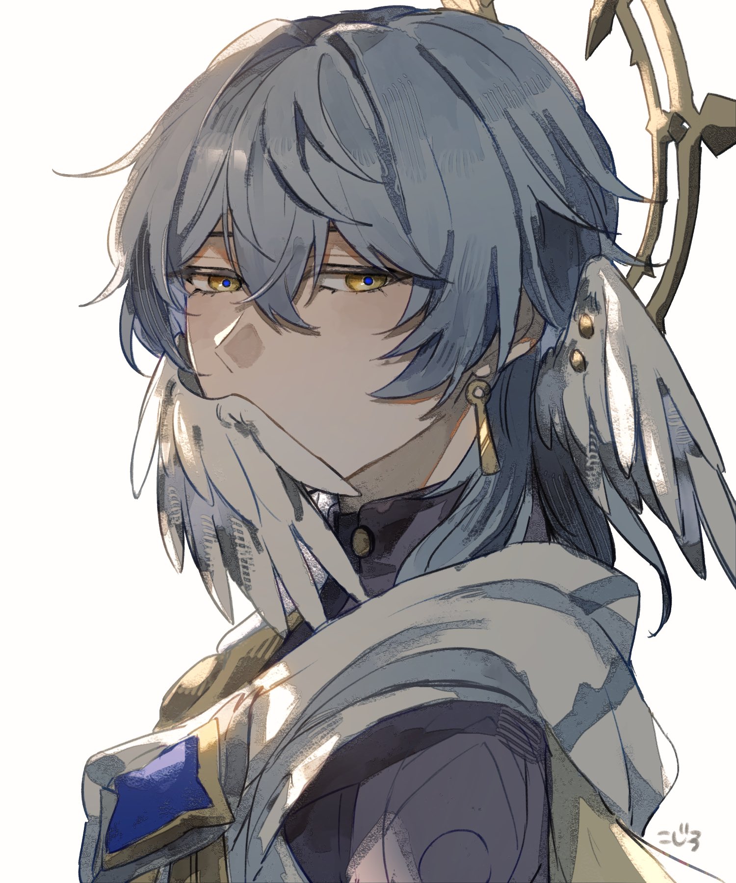 &{ID:13679163 CreatedAt:Wed Mar 18 03:15:25 -0500 2026 Score:0 Width:1500 Height:1800 MD5:05875bc8fa82e7aeb7e1de980431e942 Directory:05/87 Image:05875bc8fa82e7aeb7e1de980431e942.jpg Rating:general Source:https://x.com/halo_downfall/status/2029525116590366934 Change:1773821725 Owner:danbooru CreatorID:6498 ParentID:0 Sample:1 PreviewHeight:350 PreviewWidth:291 Tags:1boy black_shirt commentary covering_own_mouth double-parted_bangs earrings grey_hair hair_between_eyes halo halo_behind_head halo_downfall head_wings highres honkai:_star_rail honkai_(series) jewelry looking_to_the_side male_focus medium_hair piercing shirt sideways_glance simple_background solo sunday_(honkai:_star_rail) untranslatable_commentary upper_body white_background white_wings wings yellow_eyes Title: HasNotes:false HasComments:false FileURL:https://img2.gelbooru.com/images/05/87/05875bc8fa82e7aeb7e1de980431e942.jpg PreviewURL:https://gelbooru.com/thumbnails/05/87/thumbnail_05875bc8fa82e7aeb7e1de980431e942.jpg SampleURL:https://img2.gelbooru.com/samples/05/87/sample_05875bc8fa82e7aeb7e1de980431e942.jpg SampleHeight:1020 SampleWidth:850 Status:active PostLocked:0 HasChildren:false IsVideo:false DisplayDate:18.03.2026 03:15}