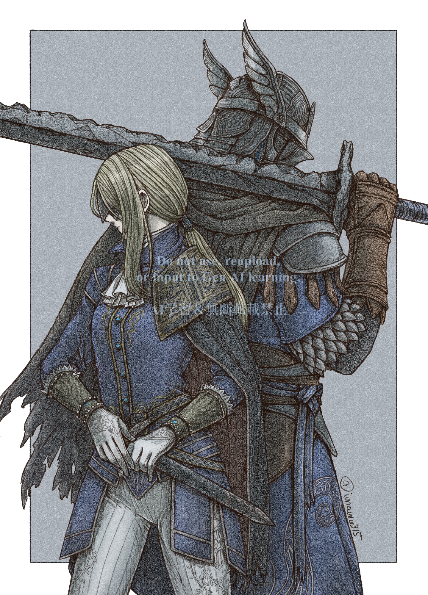 &{ID:13679653 CreatedAt:Wed Mar 18 05:46:03 -0500 2026 Score:1 Width:1438 Height:2000 MD5:9c3e95a9080107662ac168b748828fcd Directory:9c/3e Image:9c3e95a9080107662ac168b748828fcd.jpg Rating:general Source:https://x.com/imawa315/status/2034202420658712645 Change:1773830763 Owner:danbooru CreatorID:6498 ParentID:0 Sample:1 PreviewHeight:350 PreviewWidth:251 Tags:1boy 1girl armor ascot back-to-back blindfold_mask blonde_hair blue_surcoat blue_tunic border brother_and_sister brown_gloves cape commentary_request covered_eyes dagger duchess_(elden_ring) elden_ring elden_ring_nightreign gloves helmet highres imawa315 knife long_hair low-tied_long_hair mask over_shoulder pants siblings sidelocks standing sword sword_over_shoulder tunic twitter_username weapon weapon_over_shoulder white_ascot white_border white_gloves white_pants winged_helmet wylder_(elden_ring) Title: HasNotes:false HasComments:false FileURL:https://img2.gelbooru.com/images/9c/3e/9c3e95a9080107662ac168b748828fcd.jpg PreviewURL:https://gelbooru.com/thumbnails/9c/3e/thumbnail_9c3e95a9080107662ac168b748828fcd.jpg SampleURL:https://img2.gelbooru.com/samples/9c/3e/sample_9c3e95a9080107662ac168b748828fcd.jpg SampleHeight:1182 SampleWidth:850 Status:active PostLocked:0 HasChildren:false IsVideo:false DisplayDate:18.03.2026 05:46}