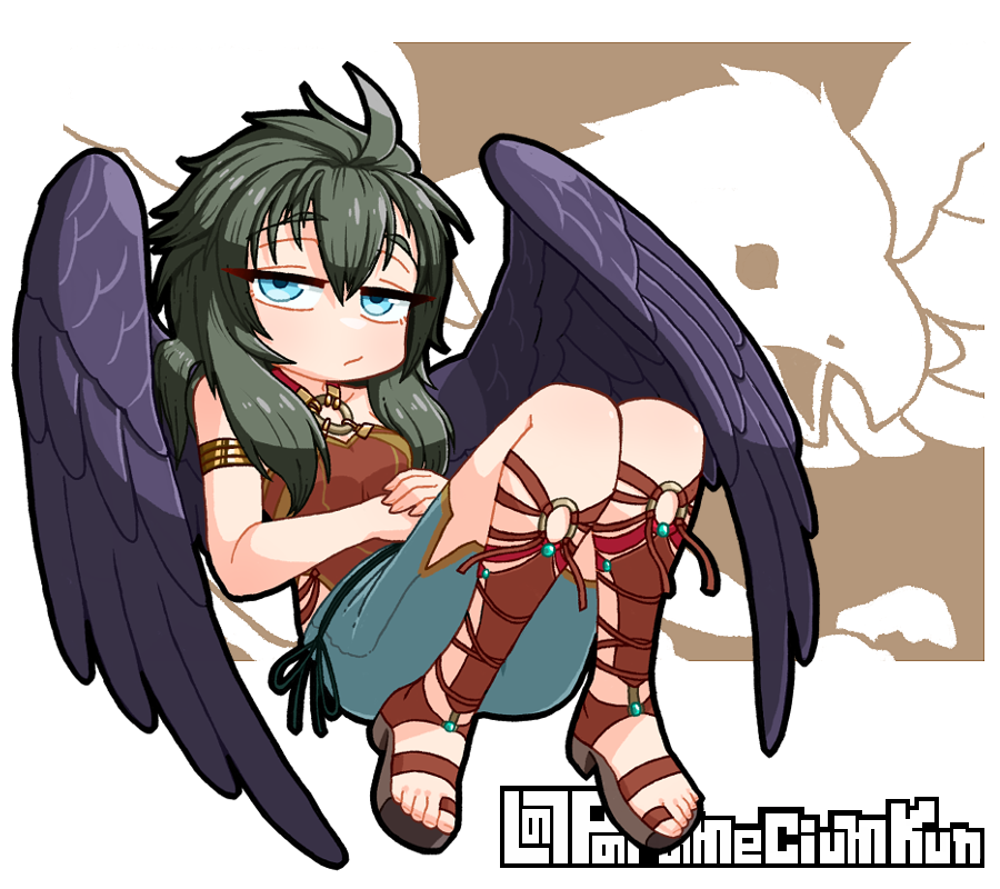 1girl bare_shoulders bird_girl bird_wings black_hair black_wings blue_eyes boots breasts feathered_wings fire_emblem fire_emblem:_radiant_dawn laguz_(fire_emblem) long_hair medium_breasts nintendo open-toe_boots parameciumkun solo vika_(fire_emblem) wings